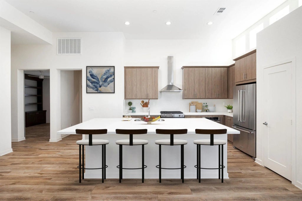 Welcome to this immaculate 3-bedroom penthouse, thoughtfully designed for comfort and style. Your private elevator opens directly into a home filled with premium touches, including custom shutters, built-in closets, a wine cabinet, and bookcases. The open-concept kitchen features KitchenAid appliances, quartz countertops, vaulted ceilings, and beautifully crafted details. The bathrooms are generously sized, featuring glass-enclosed showers and a river rock floor in the primary suite. Start your morning with coffee or unwind in the evening on your wraparound terrace, and added privacy with no neighbors above or on one side. Practical features such as a tankless water heater and epoxy-coated garage flooring make everyday living even easier. The community offers a pool, hot tub, parks, and a fire pit lounge for relaxing or gathering with friends. All this is just blocks from shopping, dining, a grocery store, and your favorite coffee spot. The building is in the process of receiving updated exterior touches, adding to the overall charm and curb appeal. Select photos are virtually staged for illustrative purposes