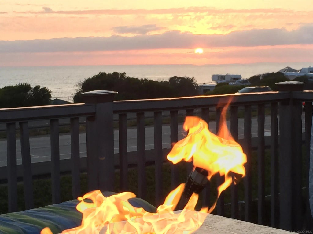 Amazing Full Ocean View from Oceanside to La Jolla! Custom direct gas feed granite fire on top deck enhancing Ocean View! Huge wraparound covered bottom deck. Outdoor shower for cleaning off after a day at the beach just a 5-minute walk and Great Surfing location. Newly remodeled nice sized main bedroom. Storage shed. Gated community, pool, jacuzzi game room and more. Comes with Full size refrigerator and Samsung washer and dryers. Parking for up to three cars.