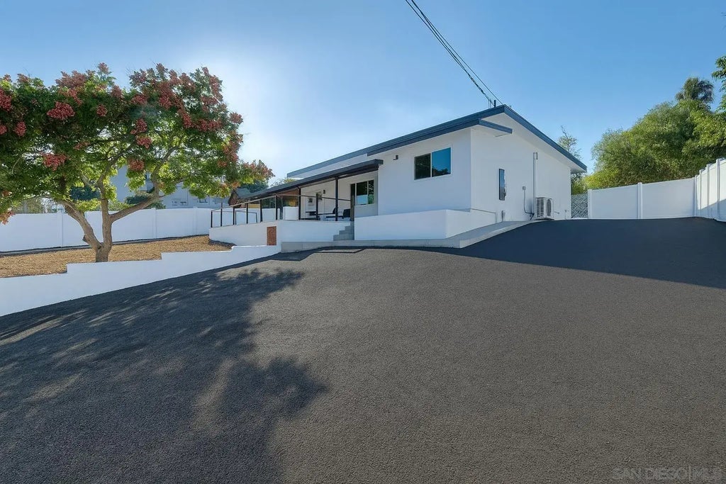 Discover this beautifully renovated, turnkey home where pride of ownership shines inside and out. Every detail has been updated—from new paint, trim, and doors to modern vinyl flooring and energy-efficient dual-pane windows. The open layout fills with natural light and flows into a stunning kitchen featuring quartz countertops, shaker cabinets, tile backsplash, and a full suite of new stainless appliances including a slide-in range, built-in microwave, dishwasher, and refrigerator with water and ice. Both bathrooms offer floor-to-ceiling tile, new vanities, mirrors, and bathtub with sliding glass enclosure. Each bedroom enjoys its own mini-split system for personalized comfort, plus wood-framed mirrored closet doors. Step outside to a massive flagstone patio perfect for entertaining or relaxing with panoramic city and mountain views. Located on a quiet street in the heart of Lemon Grove—just minutes to freeways, shopping, schools, and downtown San Diego—this property combines suburban tranquility with unbeatable convenience. The driveway and street are scheduled to be paved within the week. Pictures of the driveway have been digitally enhanced to show what the driveway will look like once completed.