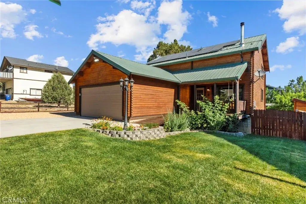 Escape the city bustle to your Big Bear sanctuary! This thoughtfully updated 3-bed, 2-bath mountain home is ideal for remote work, offering a seamless blend of modern comfort & natural beauty. Inside, discover refinished floors, custom cabinetry, granite countertops, and a spacious living area with a cozy wood-burning stove. An open loft provides flexible space for an office or relaxation. Experience true peace of mind with modern upgrades throughout: owned solar panels for low energy costs, an EV charging station, a robust security alarm system with cameras, and a durable metal roof. The fully fenced, meticulously landscaped backyard is your private oasis. Enjoy enchanting up tree lighting, abundant fruit trees (apple, cherry, peach, pear), a gas firepit, and a private hot tub for ultimate relaxation. A chicken coop or extra storage under deck adds versatility. Located in a sought-after Big Bear neighborhood, near schools, and known for its welcoming community, this home combines smart features and beautiful outdoor spacesready for mountain living in every season.