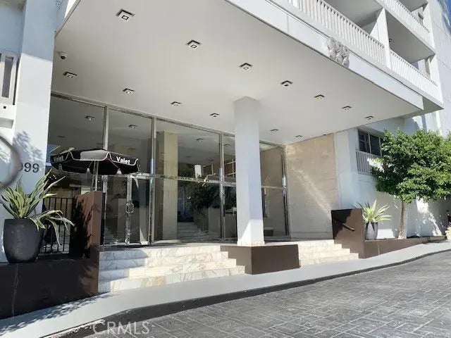 999 West Doheny is a Mid-Century Modern building located one half block below Sunset. This west facing unit has city lights view from unit an the balcony, which runs the entire length of the condominium. Features include an updated sleek kitchen with built-in stove, refrigerator, microwave and wine cooler. Remodeled bath has large shower. Electronic blinds with blackout blinds in bedroom. There is a small den which could be an office or large closet. The lobby was recently updated and the building has staffed reception, 24 hours Concierge Service, Valet Guest Parking, Gym, Salt Water Pool, Spa, Sauna and Laundry Room. This is a non-smoking building. Good Credit and Liability Insurance required. No Pets.