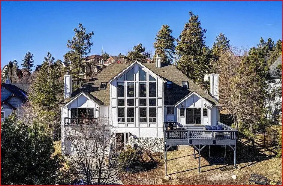 Magnificent 3-Bedroom, 3-Bathroom Property with Lake Rights and Stunning Features. This stunning property spans over 3,089 sq. ft. on an expansive 14,000 sq. ft. lot, offering both space and privacy. With high vaulted ceilings and floor-to-ceiling windows, natural light floods every room, highlighting the beauty of the home. The main floor features a large living room with soaring wood-beamed ceilings, a striking stone-laced fireplace, and a spacious open wet bar perfect for entertaining guests. The large kitchen is well-appointed, with an adjoining dining area that leads out to a spacious balcony, ideal for enjoying outdoor meals and views. Upstairs, youll find a generous loft space and two large bedrooms, providing additional living space and comfort. This home also offers dual access, with a fenced yard and air conditioning for your convenience. The alley provides additional parking, and there is a level entry from an easily accessible road, with extra parking below and steps leading up to the home. The oversized 4-car garage (800 sq. ft.) is currently used as a game room, adding even more versatility to this already impressive property. The home is offered for rent fully furnished, making it a perfect move-in ready retreat. With lake rights and proximity to national forests and trails, this home offers a perfect balance of tranquility and adventure. Dont miss out on this exceptional property!