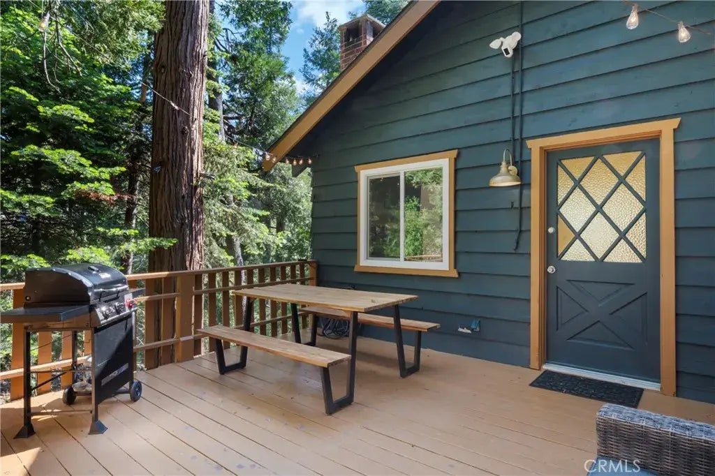 Nestled in the serene beauty of Lake Arrowhead, this enchanting 2 bedroom, 2 bath upgraded home invites you to unwind, reconnect, and savor the best of alpine living. Just minutes from the heart of Lake Arrowhead Village and the whimsical charm of Sky Park at Santas Village, this home blends mountain elegance with everyday comfort. Step inside to find a light-filled interior with rustic wood beam ceilings, an open-concept living area, and a stone-framed fireplace that sets the tone for cozy nights in. The fully appointed kitchen features modern appliances, updated cabinetry, and a breakfast bar perfect for morning coffee or evening wine. Both bedrooms offer peaceful forest views and thoughtful design, while the beautifully updated bathrooms boasts a soaking tub and shower with artisan tile work, creating a luxury experience. Outdoors offers a spacious forest view deck opening up to treetop vistas and breathtaking sunsets ideal for entertaining, grilling, or simply soaking in mother nature. Towering pines surround the property, offering privacy and a sense of seclusion, while still being close to shops, dining, and year round recreation. Whether youre hosting friends around the fireplace, sipping cider beneath the stars, or enjoying morning hikes by the lake, this home is the perfect escape crafted for those who crave nature, comfort, and connection.