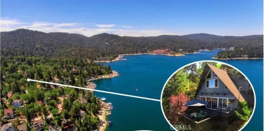 Nestled within the highly coveted area of The Palisades, this fabulous 1st Tier lake house presents an exceptional opportunity to indulge in Lake Arrowhead, with lake trail just below the home that leads to the village as well. Boasting a prime location, this 1,627-square-foot residence offers not only a captivating view of the lake but also comes with lake rights. and Immaculately maintained this home reflects an evident pride of ownership. Once inside, discover an inviting open floor plan that connects the kitchen, dining area, and living room, creating an expansive and airy ambiance. The kitchen is a culinary haven, featuring new granite countertops, a charming hammered copper farmhouse sink, a stainless steel gourmet range, and a brick alcove with a wine fridge. For entertainment enthusiasts, a pantry with a high-end washer and dryer and a double beer tap kegerator add a touch of fun. The living room is designed for both comfort and visual delight, offering a sweeping wall-to-wall view of the lake, enhanced by the warmth of wood-beamed ceilings and a wood-burning brick fireplace with an efficient cast iron insert. The main floor is adorned with a newly redone powder room and an expansive deck. This deck is a haven for outdoor gatherings, featuring a 12-foot wood bar counter area, perfect for savoring barbecues and picturesque sunsets. Ascending to the second floor, you'll find a master en-suite that exudes elegance. The new permitted bathroom features double sinks, stone countertops, and a separate commode area. A private side deck off the master suite offers a serene r