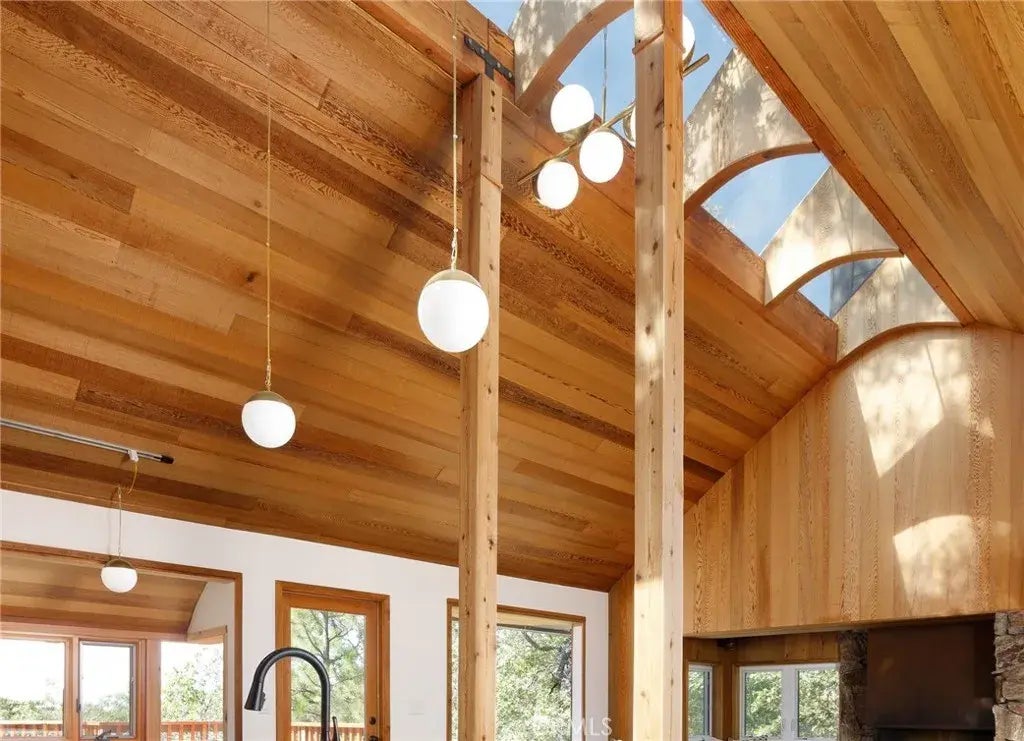 Sometimes the best surprises come in the smallest packages. That's certainly the case in the latest Brule-Cerwin remodel of this artistically unique hideaway. The only other owners are the ones who conceptualized, designed and built their dream cabin and the current owner/builders kept their concept alive, just took it to the upper limits of what it could be. The ceiling and walls of warm beautiful cedar are still there with hidden spaces that open with the touch of your hand, to house the TV and music system equipment in one and another is the laundry room! And the original owners idea of an open roof...or part of it...was kept in place, flooding the house with light from the more-than-a-skylight. Another original is the fireplace with metal hood and stone surround including a cuddly bench to curl up in. A wall was removed to open the living room and kitchen into one wide open space. A giant island in the kitchen offers seating on one side and high end appliances on the kitchen side. On the side of the kitchen is a built-in dining nook with a backdrop of windows. The living area has a spacious bay window to give you even more light. The two bedrooms are a perfect size with a loft area in each for office space or kid space, or extra sleeping space. A beautiful bathroom wth double sinks and tub/shower is conveniently near both bedrooms. A large deck in the back is a great place to barbecue and has built-in planter boxes for container gardening. Down a short set of stairs off the deck is space that could be turned into another bedroom and bath if needed, or it's just great st