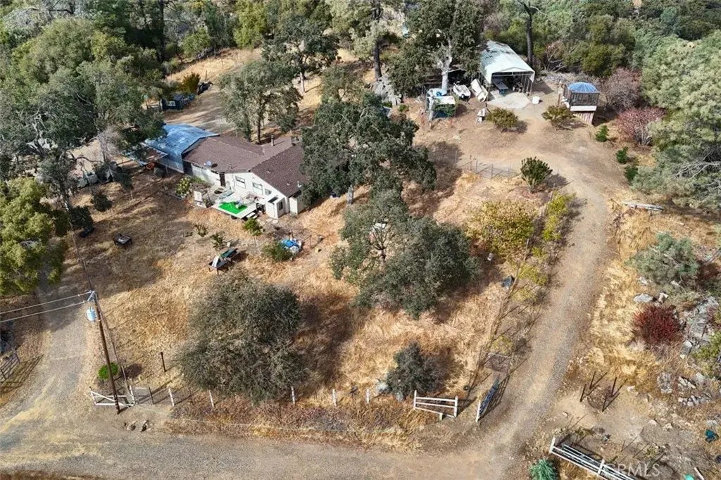 Welcome to your private mountain retreat! This adorable home sits on 7.95+/- acres with fruit trees, a garden area, beautiful views, wildlife, sheds and outbuildings, unique rock outcroppings with an Oak tree growing through one of them and even a private gun range. This 1 bedroom, 1 bath home is very spacious inside with a large open living area with tongue 'n groove ceilings, ceiling fans, woodstove, open living-dining area and a cute country kitchen with center island with a breakfast bar and a good amount of cabinet space. The bathroom is just off the kitchen with a tub/shower with shelves. The bedroom is huge! There is enough room for an office corner or a sitting area! Multiple detached carports offer covered parking for cars, trucks or an RV. The gun range has a structure for covered shooting and a target range in the distance. Several outbuildings could be made into a shop or potentially an apartment. Excellent well pumping 50 GPM when last tested. Just 10 minutes to historic Mariposa for shopping, dining and medical and 45 minutes to the El Portal gate of Yosemite National Park. This is definitely a special mountain property!