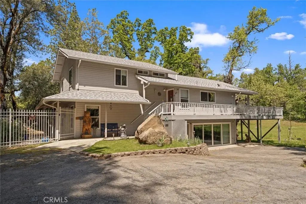 This custom-built home sits on 3.57 usable acres in one of Coarsegolds most scenic and sought-after areas. Surrounded by majestic oak and pine trees, the property features a picturesque open meadow, perfect for gardening, recreation, or simply enjoying the natural beauty and frequent visits from deer and various wildlife. With approximately 2,820 sq ft, this split-level home offers 5 bedrooms, 2.5 baths, a spacious living room with built-in shelving, formal dining room, and a versatile game room. The kitchen is well-appointed with African granite countertops, updated cabinetry, and a modern cooktop. Natural light floods the interior, and a wood slider beautifully separates the living and dining spaces. The dining area opens to a large deck, ideal for entertaining with views of the meadow. Highlighted include a newer roof (Sept 2024), dual-pane windows, and a detached two-car garage with a newer opener, private well, and back up generator. Schedule your showing today!