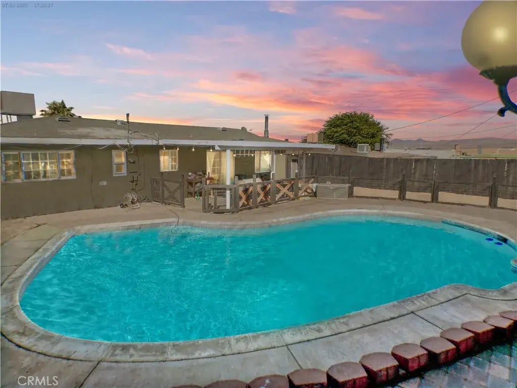 Back on the Market Hidden Gem with Pool in Barstow! This thoughtfully updated 3-bedroom, 2-bathroom home offers the perfect blend of comfort, functionality, and style. Step inside to an open layout where each space flows naturally into the next creating a warm, inviting atmosphere. The updated kitchen features modern appliances, ample storage, and a seamless connection to the main living area, making everyday living effortless. A sliding glass door opens to a large covered patio that extends your living space outdoors perfect for dining, grilling, or relaxing by the pool. The fenced-in pool area provides privacy and a refreshing retreat during Barstows warmer months, offering a great balance of indoor and outdoor enjoyment. The primary suite includes a private bath and walk-in closet, while another bedroom also features its own walk-in closet for added convenience. With an attached 2-car garage, indoor laundry, and an established neighborhood setting just minutes from shopping, dining, and freeway access, this home is a true hidden gem back on the market and ready to welcome its next owner.
