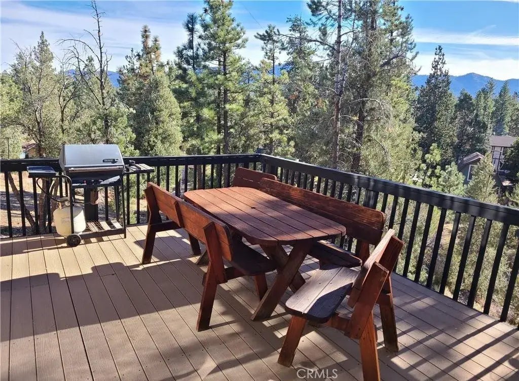 This lovely mountain home is immaculate, like new, barely used, and fully furnisheda roomy five-bedroom custom property on .25 acres. The view stares at the mountains to the south and peak-a-boos Bear Mountain through the trees. The property sits on the curve of a corner overlooking Van Dusen Canyon with hiking trails into the National Forest. The exterior is a no-care vinyl that mimics well-cared-for wood and looks newly painted. There is a small fenced area for dogs in the rear, a side deck, and two wonderful rear decks to take in the view. There's also a patio on the entry side. Almost everything stays except the paintings. Don't worry about the little things like cleaning supplies and the vacuum; it all stays. The family room has a huge sectional plus room for games and TV. There's a workshop underneath and a separate cemented step-down storage that is begging to become an indoor theater. There's also an ample size laundry /utility room. You'll find storage everywhere. We can't say enough about the condition of this home, you will have to see for yourself. If you desire large open spaces for everyone, this could be your ideal cabin.