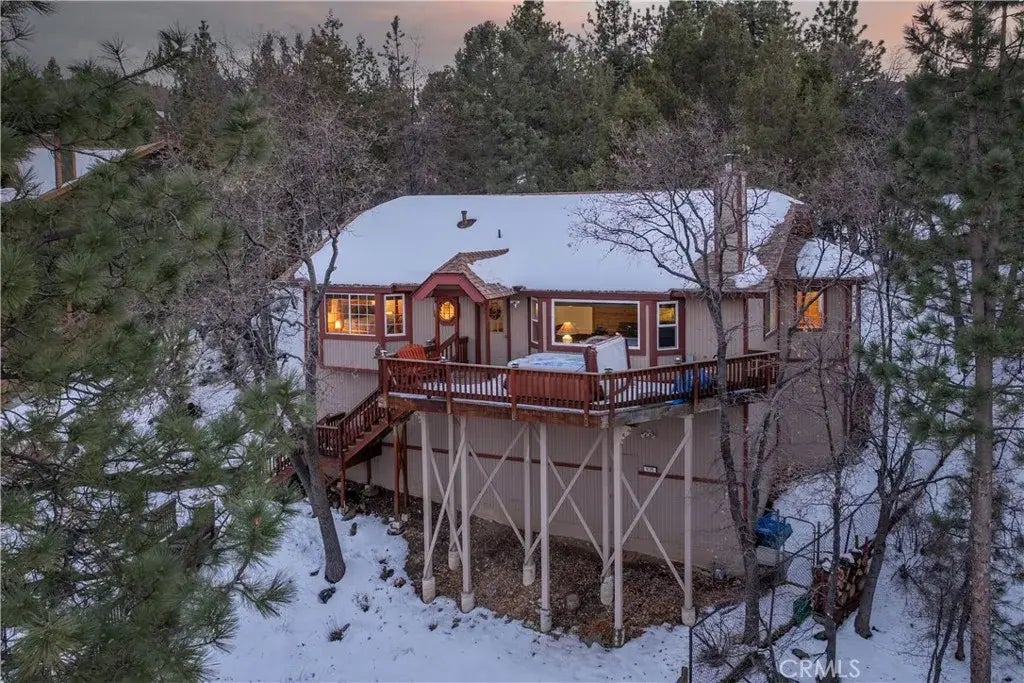 Looking for a house with endless views of trees, snow-capped mountains, and the valley? Don't miss out on this stunning mountaintop Moonridge home! Enjoy a Jacuzzi on the Trex front deck overlooking the expansive view. Inside you will enjoy views of the forest from each and every window - including the oversized Living Room window with new, tempered glass so you don't miss a thing. Other upgrades include a new roof (less than a year and a half old), new heating unit, and recently upgraded appliances. The interior instantly shows pride of ownership with a well taken care of space. This home includes central heating, a beautiful cozy fireplace, and a modern layout that actually makes sense. In the backyard you will find a roomy space with a fence for your furry friends to enjoy the space without getting out. The backyard layout takes advantage of the space unlike many Moonridge homes. Don't miss this one!