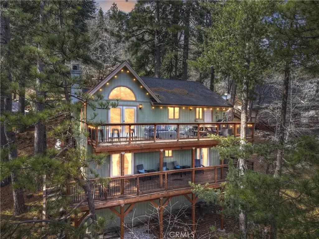 Step into your dream getaway! This exquisite mountain cabin has been completely remodeled top to bottom, inside and out! Conveniently situated in Arrowhead Woods, this property includes lake rights, is a plowed & maintained road and comes fully furnished, decorated & equipped, making it ready for you to enjoy right away! Surrounded by towering pines providing gorgeous forested views from every window! All New kitchen, baths, paint, flooring, decks, trim... You name it, it's been done! Starting with fun Dutch front door that welcomes you into a bright open-concept living and dining area. Marvel at the gorgeous tongue-and-groove ceilings that exude warmth and sophistication, complemented by a modern fireplace and accent wall for a cozy yet stylish atmosphere. Enjoy luxury living with high-end vinyl wide plank oak flooring throughout, offering both comfort and durability. The spacious entertainers back deck invites you to take in the beauty of the surrounding Pine trees, creating a serene backdrop for gatherings with family and friends. The chefs kitchen, adjacent to the dining area, boasts custom cabinets, stunning quartz countertops, and a chic honeycomb tile backsplash, perfect for culinary adventures. A custom mudroom and laundry area provide ample storage for all your winter gear! This cabin is designed for relaxation and fun, featuring a main-level bunk room ideal for kids and their guests, plus a full guest bathroom. The lower level is a retreat of its own, showcasing two additional bedrooms and another full bath. The larger primary bedroom is a peaceful haven with a bu