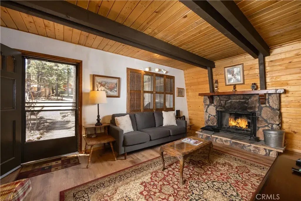 This meticulously maintained modified A-Frame home is certain to impress. It features a freshly painted exterior, new wood plank flooring throughout with a warm and cozy wood-burning fireplace. Situated in the sought-after Lower Moonridge area, which offers an array of year-round activities and enjoyment. Conveniently located just one block from the national forest, where hiking, mountain biking and snow play can be enjoyed! Also conveniently located approximately one mile from the ski resorts, less than a mile from the zoo and golf course. The prime location is positioned in Big Bear Valley, providing easy year-round access to, dining, and other amenities. This property is turn-key and move ready."