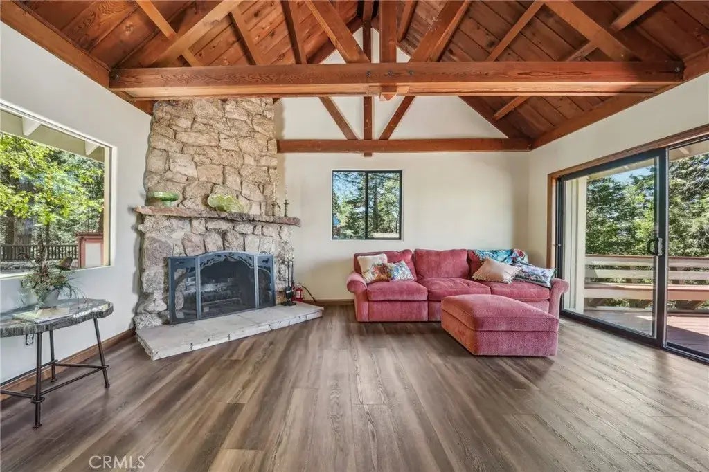 Offered for the first time in years, this timeless 1928 mountain lodge is nestled in the coveted enclave of Crest Estatesa private, storybook neighborhood where listings rarely surface. Tucked among towering pines, this home blends rich historic character with refined modern upgrades. The moment you enter, you're greeted by soaring two-story trestle-beamed ceilings and a floor-to-ceiling rough-hewn granite fireplace that anchors the sun-drenched great room. Nearly every roomsave the bathroomsboasts sweeping panoramic views of Lake Arrowhead, stretching almost to the marina. The main level features a chefs kitchen with brand-new, never-used appliances (still in protective wrap), custom cabinetry, and a statement powder room. A charming mid-stair window seat offers a moment of retreat with breathtaking views of both lake and forest. Upstairs, the primary suite reigns supreme with its own private balcony and open loft-style landing, creating a secluded sanctuary above it all. Downstairs, find a secondary bedroom and utility room with direct access to updated systems including FAU and a tankless water heaterplus space to add a bathroom. Outside, a fully renovated detached guest house provides studio-style luxury with its own lake views. While this property does not currently hold lake rights, consider pursuing them via an Arrowhead Woods lot purchase. In the meantime, you'll enjoy a setting so private, serene, and visually commanding it barely seems real. This is not just a homeits a legacy opportunity. Properties like this whisper through the market. By the time you hear them,