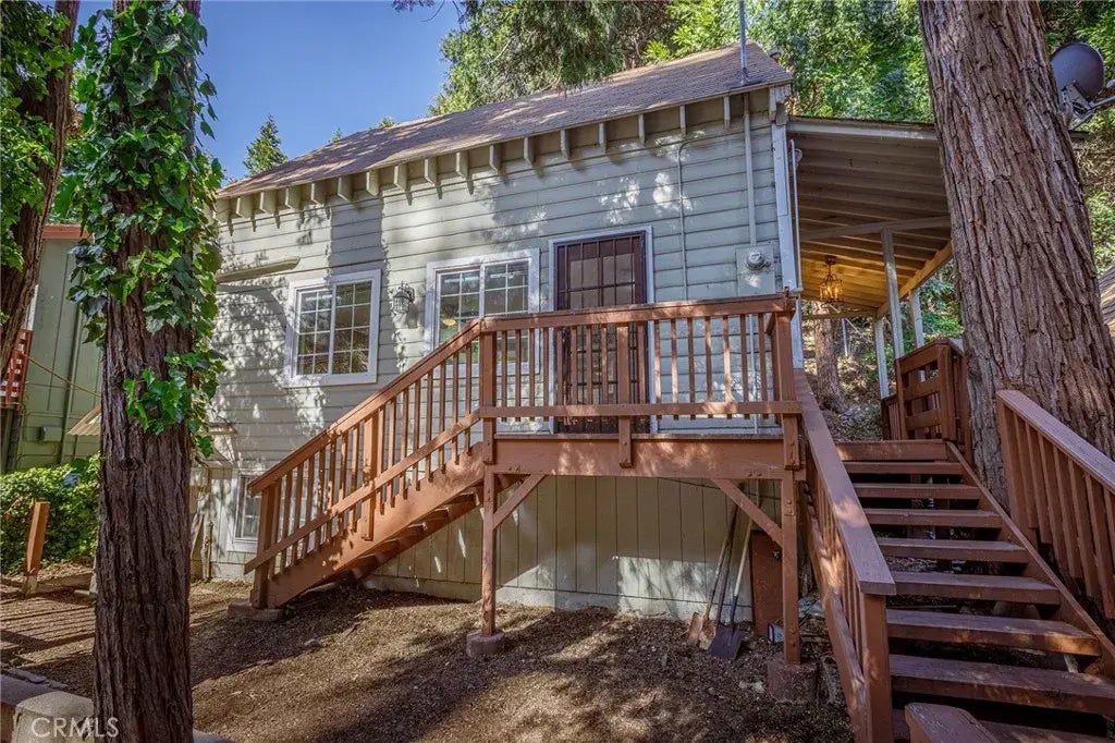 Unlock the potential of this charming Crestline home - a true canvas for your imagination! This house blends vintage character with modern updates. Step inside to discover an open concept living room that opens onto a sunny deck, perfect for morning coffee. Upstairs, youll find extra common space between the bedrooms, ideal for a reading nook, play area, or home office. One upstairs bedroom even offers its own private bath, offering extra comfort and privacy. But thats not all! Downstairs, a bonus studio with its own bath and space for a kitchenette awaits - perfect for guests, a creative workspace, or rental income (not included in the main square footage!). Renovations in the past 5 years include new kitchen cabinets, stainless steel sink, quartz countertops, waterproof laminate flooring, recessed lighting, new windows, furnace and roof. Conveniently located between downtown Crestline and Top Town, between highways 18 and 138 and just minutes from Lake Gregory, youre never far from local shops, dining, and mountain adventures. Bring your vision and make this versatile property your own mountain haven.
