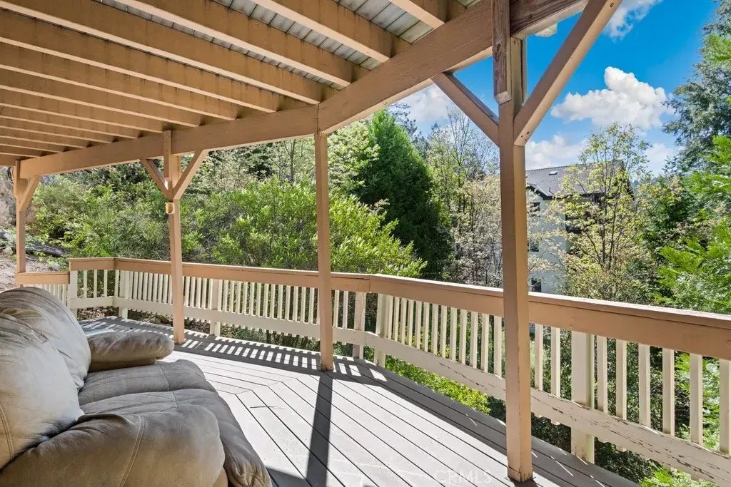 Privately Nestled Mountain Retreat with Incredible Views on Every Level. Experience peaceful mountain living in this beautifully situated multi-level home, offering incredible views of the trees and mountains from every level. Tucked away for privacy and surrounded by nature, this home features high ceilings with tongue-and-groove woodwork and exposed beams, paired with large windows that flood the interior with natural light and frame the scenic landscape. On the main living level, you'll find a warm and inviting living room with a fireplace, dining area, and kitchen, all with access to a wraparound deck that offers panoramic views. This level also features two well-sized bedrooms and a full bathroom. The lower level welcomes you with a spacious game room that opens to a covered deck nestled among the treesperfect for relaxing or entertaining. This level also includes a bedroom, laundry area, and a closet with shower for added convenience. Upstairs the top floor boasts a cozy loft with access to a private balcony and leads to the expansive primary suite, complete with a spacious en suite bathroom and treetop views. Located just minutes from Blue Jay Bay at Lake Arrowhead and a short drive to Lake Arrowhead Village. Whether you're looking for a full-time residence or a serene mountain getaway, this property is a must-see.