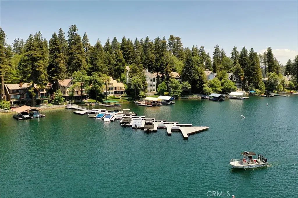 REDUCED TO MOTIVATE! DON'T MISS THIS OPPORTUNITY in this Charming English Tudor in Prestigious Point Hamiltair with Boat Dock on Private Lake ArrowheadBehind the coveted gates of Point Hamiltair, one of Lake Arrowheads most prestigious lakeside communities, discover this timeless English Tudor-style retreat. Tucked at the end of a quiet cul-de-sac, this beautifully updated home offers privacy, charm, and modern amenities in an idyllic setting. Boasting level entry with an attached 2-car garage, this 4-bedroom, 3-bath residence sits on a private, tree-studded lot surrounded by towering pines, perfect for those seeking serenity and natural beauty. Inside, enjoy an updated kitchen, wood floors, and a spacious floor plan designed for effortless indoor-outdoor living. The large entertaining deck invites gatherings under the canopy of trees, ideal for summer evenings or morning coffee. Just a short stroll away is your private boat slip on exclusive Lake Arrowhead, Southern Californias premier private lake community, offering boating, fishing, swimming, and year-round recreation. Whether as a full-time residence or a luxurious weekend retreat, this exceptional property blends classic Tudor charm with modern comfort in an unparalleled lakeside setting.