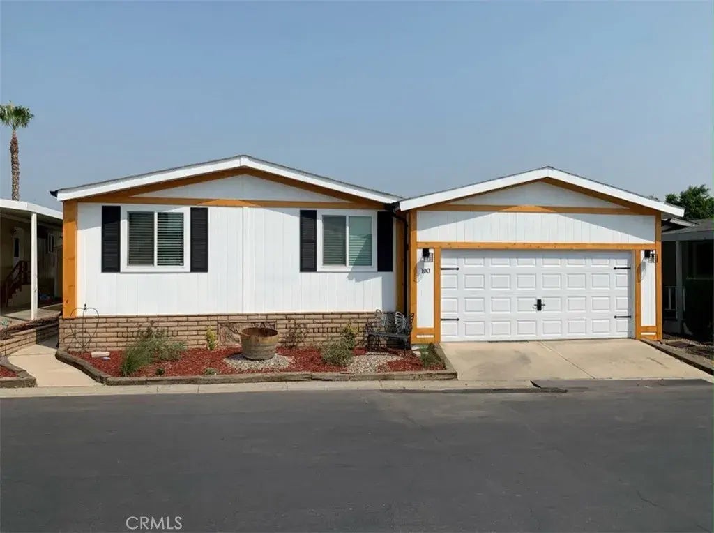 This Stunning fully furnished mobile home in Villa Corona Family Park is PACKED with UPGRADES that SETS IT APPART!! Completely bursting with enhancements, this home offers a seamless blend of comfort and modern convenience. The remodeled kitchen is a showstopper, featuring large premium black / white granite countertops with an oversize granite island, sleek soft-close white cabinets and drawers, deep porcelain farmhouse sink with commercial faucet that adds charm to the space. High-end Samsung stainless-steel appliances, including a French-door smart refrigerator with a built-in monitor, ensure both style and functionality. Entertaiment ready the living room features 8" wide long plank luxury vinyl flooring with a ceiling-mounted 4K projector, 80" drop-down screen, and 5.1 built-in surround sound wall speakers. A 5,0000 BTU decorative electric fireplace with porcelain tile adds cozy charm. The primary bedroom showcases 2 solid barn doors for both the bath and entry. The spa-inspired primary bath offers fiberglass tub, 8-body jet message, with temperature display, rain head shower fixture, and a solid quartz dual sink vanity. Upgraded bathrooms elevate the home with contemporary finishes, offering a fresh and sophisticated feel. Comes with 2 separate Commercial-rated HVAC/Heat pump system to ensure year-round comfort. Additional perks include 200 sq ft deck, retractable remote-control awning, a 120 sq ft. Tuff Shed with its own electrical panel, insulation, drywall and a window AC unit. 2-car garage complete with a rear door for drive-through access. The beautiful, landscap