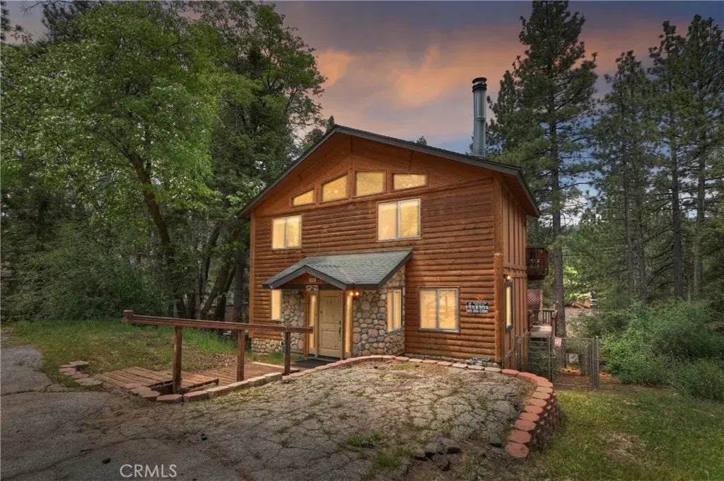 Beautiful log-sided Chalet with ski slope views including a DOCK at Pine Knot Marina! Thats right, a 20 foot dock with a hydro hoist and generator at the dock, electricity and water are available right there too, accommodates boats up to 20 feet ~ This charming mountain home offers the perfect blend of rustic elegance and modern comfort ~ Located just minutes from Bear Mountain Resort, this three bedroom, three bathroom chalet is situated on a spacious lot with ample parking and stunning south-facing views of the ski slopes ~ The living room features inviting wood interior accents and vaulted wood-beamed ceilings, abundant natural light, and a cozy corner fireplace ~ The multilevel decking provides ideal outdoor living space, complete with a new spa for soaking under the stars ~ Two of the bedrooms are en-suite, making this home well-suited for full-time living, a weekend retreat, or continued success as a proven vacation rental ~ The layout is ideal for entertaining and offers flexibility for families, couples, groups and even pets, offering a fenced yard ~ Minutes from skiing, hiking, golf, the zoo, and Big Bear Lake ~ Enjoy the fresh mountain air, slower pace of life, and close proximity to all that Big Bear has to offer ~ Enjoy the luxury of top-notch amenities ~ Don't miss your opportunity as an all in one purchase creating memories to last a lifetime.