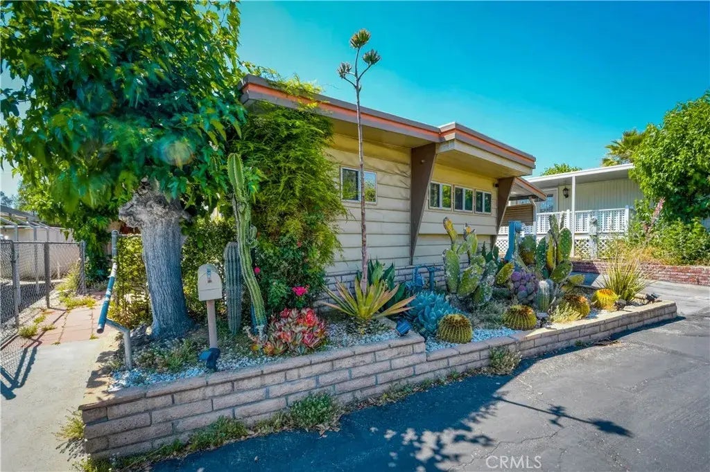 Charming 2 Bedroom, 2 Bath Home in Calimesa 55+ Community! Welcome to your peaceful retreat in the heart of Calimesa! This Double Wide Mobile Home in Calimesa with two bedrooms/two bathrooms. Laundry-room, a large living/tv-room, with kitchen/dining room. Cozy backyard landscaped with embedded walkway stones and small crossing-bridge. Three big mature fruit trees, avocado, lemon & orange. With cactus garden in front of home. Completely fenced, with three gated entries. Also a medium-size work-shed. Along with spacious outdoor two-car awning driveway.