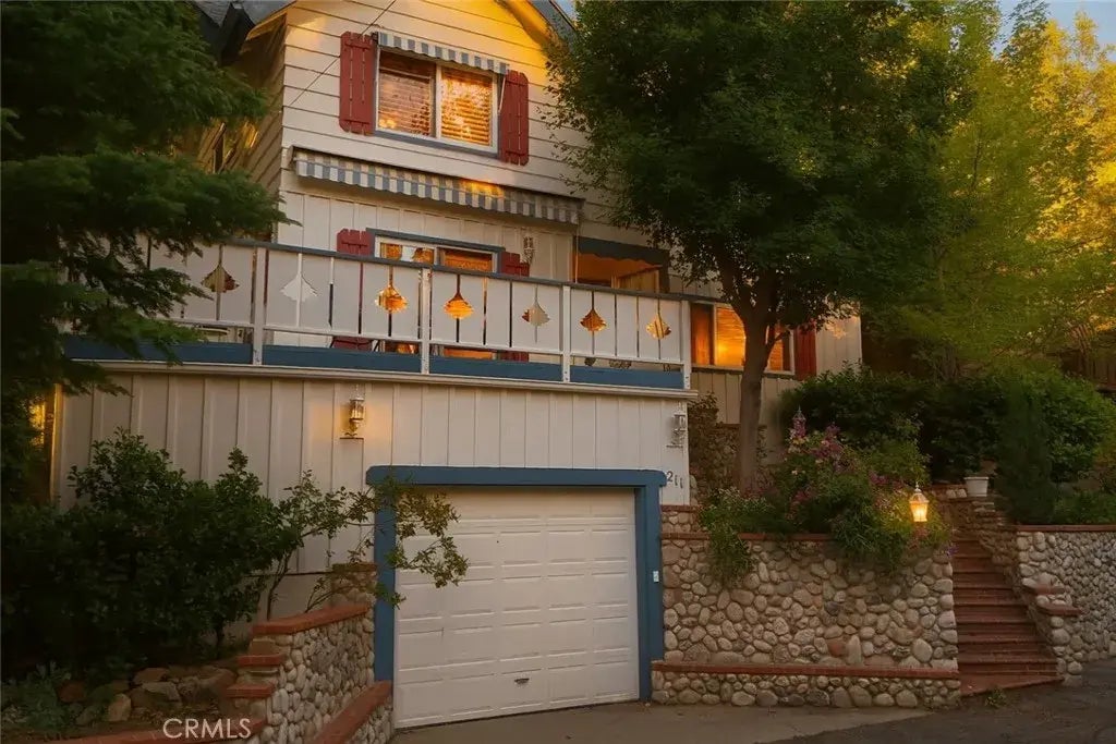 Located close to the private shores of Lake Arrowhead, this mountain home is ready for enjoyment. This Palisades-neighborhood retreat offers the perfect blend of comfort and convenience. A garage below the house provides ample parking, while air conditioning and a spacious, fully fenced, backyard ensure year-round enjoyment. On the main level, sunlight pours into a well-appointed kitchen and adjoining dining nook, which flows seamlessly into a generous laundry and storage room. The living room centers around a granite fireplace and allows access to the backyard space. Upstairs, the spacious primary suite features a large en-suite bathroom, and across the hall youll find two additional bedrooms and a full bath. Every detail of this home has been designed to invite you to relax and make memories.