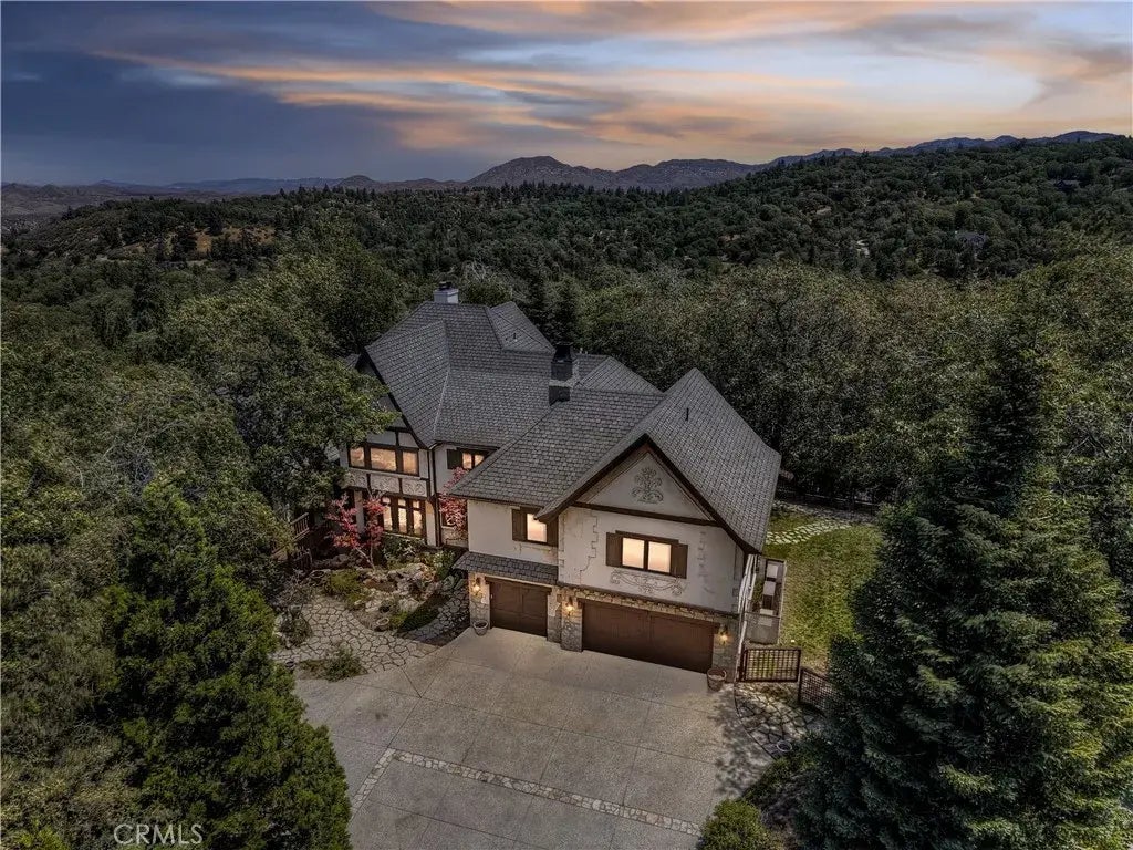 "Stunning Mountain Estate in Exclusive Gated Canterbury Estates" ~ Escape to refined mountain living in this remarkable 4,700 sq ft estate set on a serene and forested 1.84-acre lot behind the gates of prestigious Canterbury Estates in Lake Arrowhead. ~ From the moment you arrive, you're captivatedenter the property via a private bridge that crosses over a cascading waterfall, setting the tone for the serenity and grandeur that awaits. Featuring miles of views from every window, 4 spacious bedrooms and 4.5 luxurious baths, this home blends mountain elegance with everyday comfort. The main-level living room/office boasts a warm fireplace and opens to a tranquil deck overlooking towering pines. The XL chefs kitchen includes a generous island, professional-grade appliances, and flows seamlessly into the light-filled breakfast area and large family room with another fireplace. A formal yet open dining room is perfect for entertaining. ~ Step outside to a level patio, beautifully landscaped and fenced yard, ideal for outdoor dining or simply enjoying the peace and privacy of your forested yard. ~ The master retreat is its own sanctuary, complete with a private deck, romantic fireplace, spa tub, sauna, and walk-in shower. ~ Additional amenities include air conditioning, whole-house automatic generator, high-speed internet, all public utilities, and county-plowed & maintained roadsmaking year-round access effortless. ~ Located just 3 minutes to Lake Arrowheads private Tavern Bay Beach Club, 4 minutes to the marina, and 10 minutes to the Village for shopping, dining, and entertainm