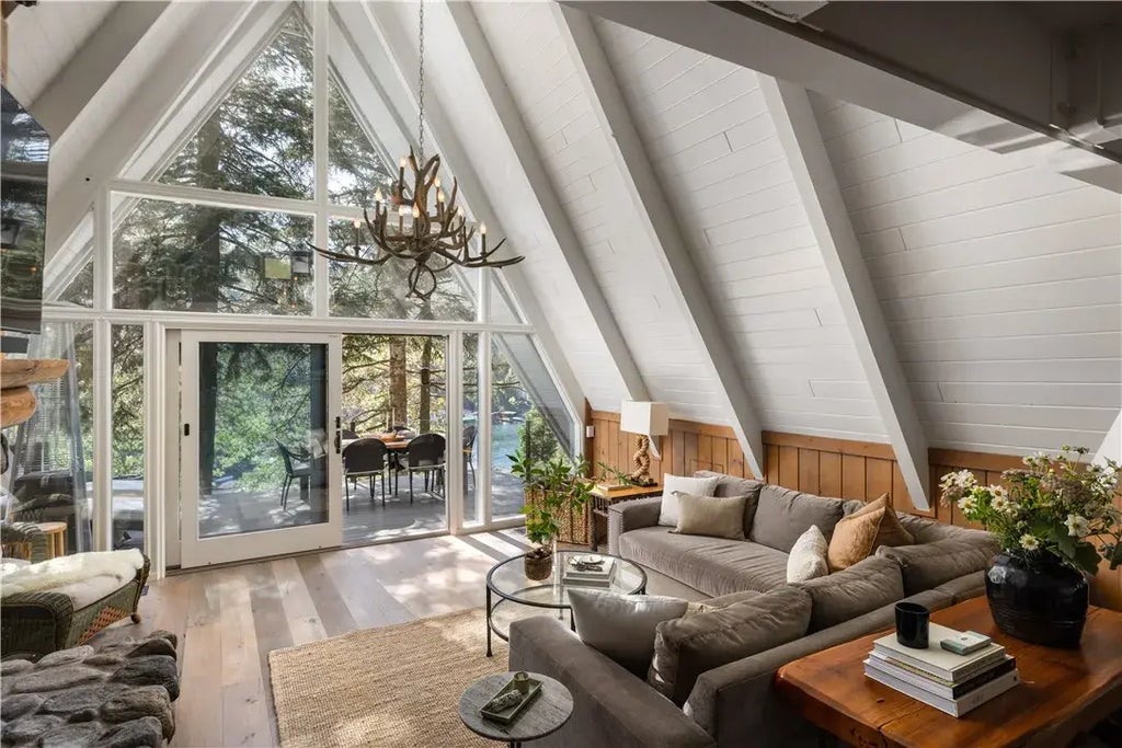 Discover this beautifully remodeled lakefront retreat tucked away on one of Lake Arrowheads most sought-after streets. With sparkling lake views, designer finishes, and a private single-slip dock (Dock #S26), this 3,720 sq ft home offers the perfect blend of modern luxury and mountain charm. Step inside to a bright, open-concept double A-Frame with expansive windows and fluid outdoor spaces. The main-level great room centers around a dramatic stone fireplace with the lake as the backdrop and sliding doors opening onto an entertainers deck overlooking the water. The gourmet kitchen features high-end appliances, a large island, built-in dinning banquette and adjacent BBQ patioideal for hosting gatherings year-round. The spacious main-floor primary suite boasts serene lake views and a spa-inspired en-suite bath with a floating tub with views of the water. Upstairs, two guest bedrooms, each with a-frame architecture, share an interior water-view balcony, while the lower level includes a fourth bedroom, full bath, laundry room, and an incredible media/game room with surround sound and built-in barperfect for cozy nights or lively weekends. Enjoy multiple decks, a covered patio with a hot tub, and direct access to Lake Arrowheads clear waters. The property includes off-street parking for four vehicles, dual Tesla charging stations, a whole-house generator, central air conditioning and a security camera system for ultimate comfort and peace of mind. Located just minutes from Lake Arrowhead Village and year-round recreational opportunities,161 Rocky Point Rdis your private escapewh