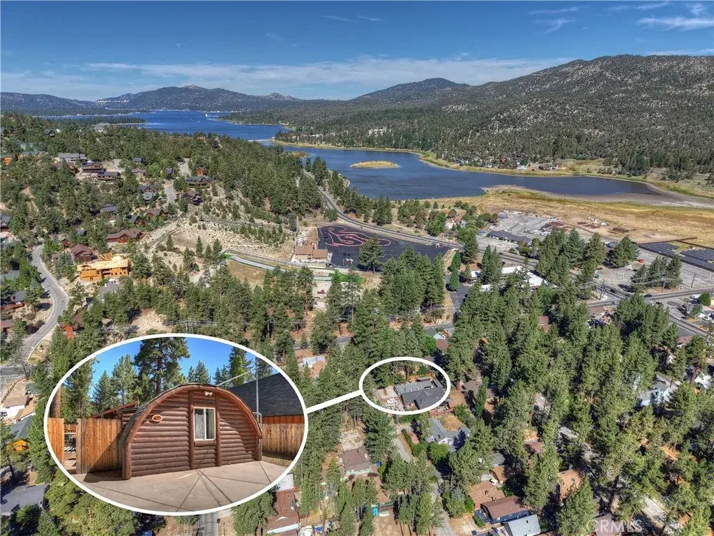 Rustic elegance meets modern comfort at this distinctive quonset retreat in Big Bear City ~ Step into mountain living reimagined with this exquisite 2-bedroom, 2-bath Quonset home ~ A rare architectural gem wrapped in rich log siding and meticulously maintained inside and out ~ Designed for both style and comfort, this residence offers a seamless blend of rustic charm and refined finishes, making it an ideal full-time haven, weekend escape, or premium short-term rental ~ The light-filled open floor plan showcases soaring tongue-and-groove ceilings, creating a warm yet airy ambiance ~ The gourmet kitchen is a showpiece with handcrafted custom cabinetry, sleek Corian countertops, and thoughtful design details that make both everyday living and entertaining a pleasure ~ Luxurious heated floors in the bathrooms add a touch of spa-like indulgence, perfect after a day on the slopes ~ Enjoy the outdoors year-round with a welcoming private front porch, a sheltered back porch for relaxed gatherings, and a generous double shed for all your mountain gear ~ Ample parkingincluding a carportensures effortless convenience ~ Set in a prime location, youre just a short stroll to Snow Play and Oktoberfest festivities, and a quick 5-minute drive to the lake, scenic hiking trails, world-class ski slopes, and vibrant dining ~ Here, every day feels like a getaway.
