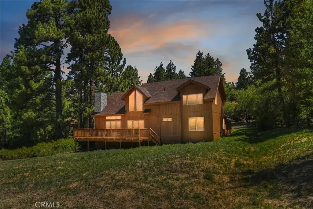 Welcome to 43611 Bow Canyon in beautiful Big Bear Lake ~ This charming mountain retreat, located in Moonridge, offers the perfect blend of rustic charm and modern amenities ~ Once you ascend the few steps to the covered front porch and open the beautifully detailed wood door you will marvel at the spacious open-concept living area, which is perfect for entertaining and spending time with friends and loved ones, and features a cozy, floor to ceiling rock fireplace, beautifully kept T&G throughout , vaulted ceilings, and lots of windows make the home light and bright and are great for taking in the stunning ski slope views ~ There are 4 large bedrooms (2 conveniently located on the main floor), 3 bathrooms and a big loft with floor to ceiling windows in this spacious 2,335 sq. ft home ~ The big kitchen offers plenty of cabinet and counter space and opens up to the living and dining rooms ~ There's also a giant walk-in pantry ~ Outside, you'll find a large deck, perfect for soaking in the fresh mountain air and gathering for drinks or BBQ, and enjoying the beautiful views ~ The property is large, almost 27,000 sq. ft., and is all flat and usable ~ There is a 2 car garage and ample parking for all your vehicles and toys ~ The roof is brand new and the outside and decks have recently been sanded down and painted ~ Located just a short drive to the lake, ski slopes, and surrounded by hiking trails, this home is the perfect base for all your Big Bear adventures ~ Don't miss out on this incredible opportunity to own your own piece of paradise in the mountains ~ This stunning proper