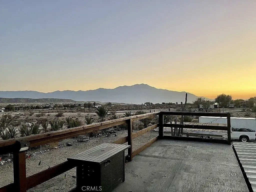 Escape the city and enjoy serene, private living on this gorgeous 2.5-acre property featuring 66-73 Medjool Date trees with room to plant many more. Zoned for agriculture and equestrian use, this secluded retreat offers spectacular mountain and desert vistas, perfect for appreciating stunning sunsets, sunrises, and starry nights in peace. The charming, furnished 4-bedroom, 1-bath Sky Valley home boasts a European kitchen with white and gray granite countertops, Old World cabinetry, and spacious dining area. The bathroom features a high vanity with a glass bowl sink and an open tile shower. The living room is warm and inviting, with French doors and a real wood-burning stove, complemented by a spacious 6 x 40 screened-in porch for outdoor relaxation. A fourth bedroom on the west side of the home provides additional flexibility. Outside, the property includes a trailer for a project ideal for guests, a caretaker, or in-law quarters as well as four sheds for storage. For entertainment and gatherings there is 20x40 concrete slab on the lower part of the property offers versatile space for additional projects or structures. The home is partially gated for privacy and features a covered carport, making it perfect for families, artists, musicians, or contractors seeking a peaceful rural lifestyle. This property offers a unique blend of natural beauty, functional living spaces, and agricultural potential, making it a truly special retreat in Sky Valley