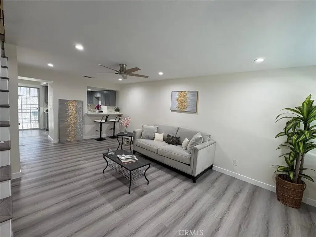 Here is your chance to own this beautifully remodeled townhouse-style condo, nestled within a secure gated community in the heart of Compton. This spacious two-bedroom, one-and-a-half-bath home features a thoughtful layout, with both bedrooms and the full bathroom located upstairs, and a convenient half bath on the entry level. Step inside to luxury wood-style vinyl flooring and recessed lighting throughout. The fully renovated kitchen boasts brand-new shaker cabinets, quartz countertops, and stainless steel appliances including a refrigerator, stove, microwave, and dishwasher. Just off the kitchen and dining area, enjoy a private patio with a storage room, perfect for relaxing or entertaining. Upstairs, you'll find the laundry room for added convenience. This home also features a brand-new HVAC system providing central air and heat ideal for year-round comfort. The community is beautifully maintained, with lush landscaping visible right from your front door and windows. Dont miss your chance to fall in love with this move-in-ready gem!