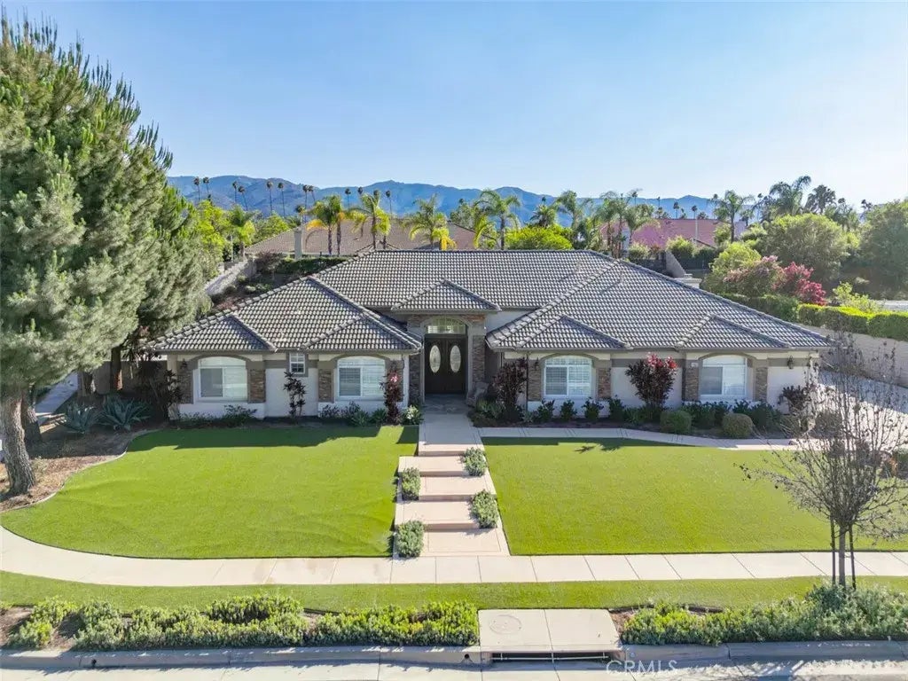 This expansive single story home, located in desirable South Corona neighborhood, has all the upgrades and features you're looking for a luxurious and comfortable style of living. Four bedrooms plus an office, three and a half bathrooms, formal living and dining, and expansive kitchen and adjacent family room are spread over nearly 4,000 square feet, located on a half acre lot. Enjoy entertaining at the formal living and dining room with 14-foot coffered ceilings. The chef's kitchen features Thermador appliances: six burner gas range, double ovens, and built-in refrigerator. There's also a wine refrigerator, Miele coffee maker, and walk-in pantry. Decora cabinets with soft-close doors and drawers line the kitchen, topped by gorgeous marble counters. And the prep island has a conveniently located drawer microwave. All rooms are generously sized, notably the family room with space for a pool table and the primary suite with fireplace and sitting area. The primary suite has a spacious walk-in closet and remodeled bath with oversized shower and free standing tub. Stepping outside, you'll have the luxury of a covered outdoor fireplace and kitchen with newer Twin Eagles gas grill, refrigerator, and bar seating which comfortably seats eight. And enjoy the convenience of gated RV parking with upgraded electrical outlet and easily fits a 55-foot RV. Other notable features include custom shutters and wood blinds, a whole-house vacuum system, new water softener and 75-gallon water heater, epoxy flooring and storage cabinets in the garage, and two outdoor sheds. Located just a short di