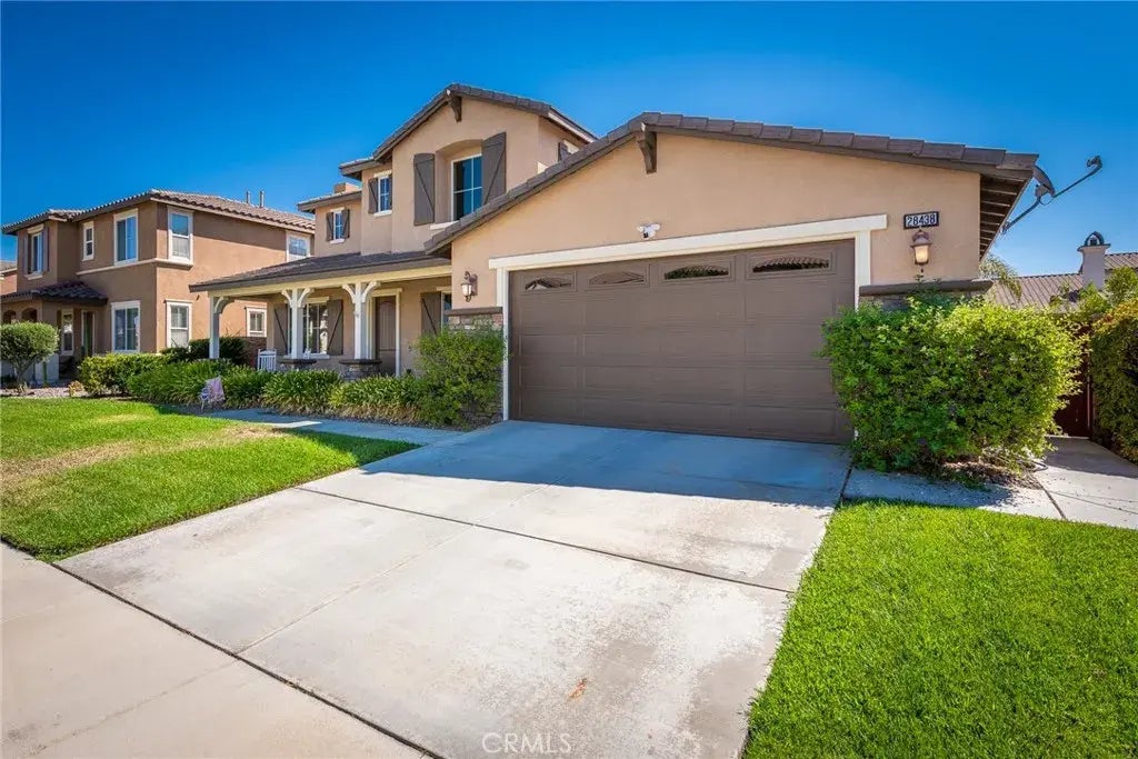 Charming Two-Story Home in Desirable Menifee Neighborhood Welcome to 28438 Beacon Bay Circle, a beautifully maintained two-story home located in a peaceful cul-de-sac in the heart of Heritage Lakes. This spacious residence offers stunning curb appeal with its modern stucco and stone exterior, upgraded shutters. You get to decide whether to use the inviting covered front or back porch, when its time for relaxing with your morning coffee or enjoying a glass of wine with those evening conversations. Step inside through the elegant front door and discover a well-designed floor plan featuring generous living spaces, abundant natural light, and tasteful finishes including crown molding throughout. The home includes 4 bedrooms and 3 bathrooms, ideal for families or those who enjoy hosting guests. A large, open-concept kitchen seamlessly connects to the living and dining areas, making entertaining effortless. The primary suite, Located downstairs features a luxurious en-suite bathroom with double sinks, a separate shower and soaking tub, dual walk-in closets. One additional bedroom and bathroom are downstairs, plus 2 bedrooms and a full bath upstairs offer flexibility for use as guest rooms, a home office, or a den. Make sure you peek under the stairs!! Additional highlights: Attached 2-car garage with a tandem spot for a 3rd car Beautifully landscaped front yard with lush greenery Energy-efficient windows and modern exterior lighting Located in a quiet and friendly neighborhood of Heritage Lakes Close to top-rated schools, parks, shopping, and freeway access Dont miss your op