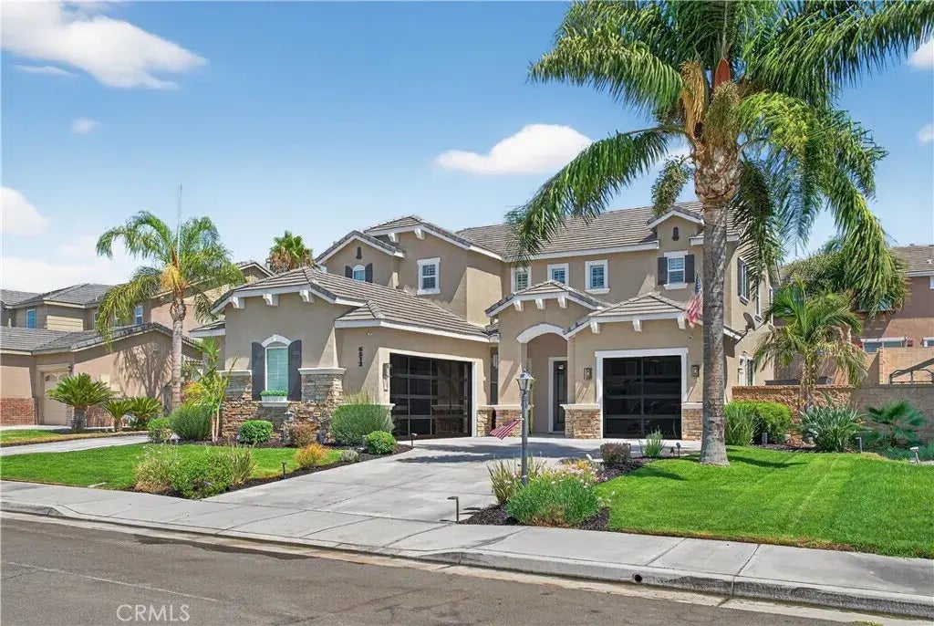 Welcome to one of Eastvales premier homes, where elegance, functionality, and custom craftsmanship come together seamlessly. This 5-bedroom, 3-bath residence offers approximately 3,050 square feet of living space, thoughtfully designed with upgrades that make it truly stand out. Step inside to discover a custom kitchen design featuring upgraded counters, cabinetry, and flooring, complemented by custom paint finishes that bring warmth and character throughout the home. The versatile first-floor guest bedroom doubles as a private office, while the dual-sided fireplace adds charm and sophistication to both formal and casual living areas. Upstairs, expansive bedrooms provide comfort and flexibility, while the spacious primary suite serves as a private retreat with a spa-like bathroom and a large walk-in closet. Designed for convenience and lifestyle, this property features a fully finished garage with custom doors, overhead storage racks for ultimate organization. Outdoors, enjoy dedicated RV parking with full hookups and thoughtfully designed exterior accents that enhance both curb appeal and practicality. Every detail of this home has been carefully curated to balance beauty and function. With its generous floor plan, luxury upgrades, and custom features throughout, 6512 Caxton St is truly one of the neighborhoods finest offerings.