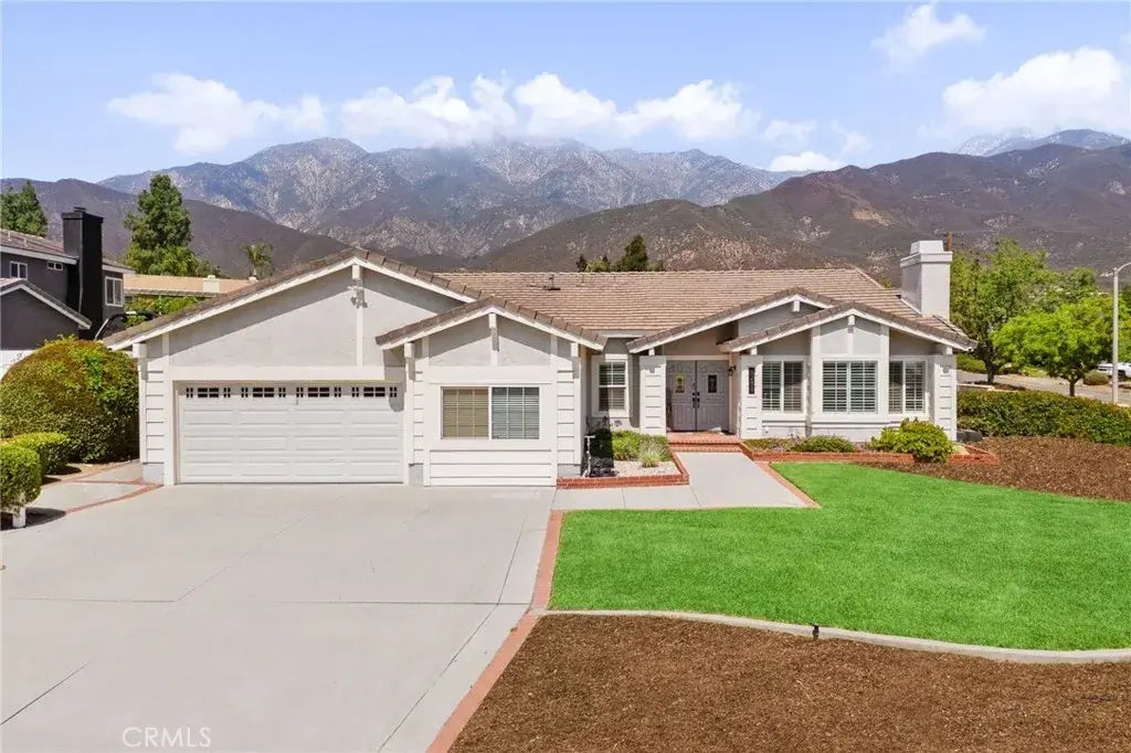 Panoramic Views & Luxury Living in Alta Loma!! Perched on a half-acre corner lot, this fully remodeled single-story home offers breathtaking mountain and city light views. Step through double doors into an expansive open floor plan with soaring ceilings, waterproof vinyl plank flooring, and cozy fireplaces in both the living and family rooms. Dual-pane windows and wood shutters enhance the bright, inviting spaces throughout. The gourmet kitchen is a chefs dream, boasting white shaker cabinetry, quartz countertops, a spacious island, farmhouse sink, stainless steel appliances including a five-burner cooktop, double oven, and hood and a stylish tile backsplash. Retreat to the luxurious primary suite featuring dual walk-in closets and a spa-like bathroom with dual vanities, a walk-in shower with custom tile accents, and a separate soaking tub. Secondary bedrooms are generously sized with mirrored closets and organizers, while the fourth bedroom is currently an open den with a wet bar. The backyard, situated on a spacious corner lot, includes gated horse-trail access, providing convenient entry for an ADU, RV, or future pool construction. Located within excellent, top-rated schools and just minutes from shopping, dining, and the 210 freeway experience the perfect blend of comfort, style, and lifestyle in this exceptional Alta Loma home.