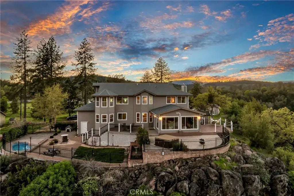 Picturesque Equestrian Estate situated on 40 acres overlooking Asbill Valley! Located a few short miles from town and nestledbetween 2 fabulous Lake County wineries,you will find this peaceful, fully fenced/cross fenced property which includes a Custom Built 4 bed + den / 2.5 bath, 3,353 SF home with outstanding panoramic views surrounding. A 528 SF guest cottage, detached 544 SF garage/shop, 12x12 tool shop & 6x6 woodshed. The upper portion of the property is ready for livestock with newer white vinyl 4 rail fencing, several pastures, a chicken coop, 6 horse stalls (singles and doubles), horse arena and designated tack room. A circular driveway with plenty of space nearby the main home offers several level parking opportunities for your cars or recreationalvehicles. The formal entry with 2 story ceilings and hardwood flooring makes a statement as you enter the home. The main level includes a large sunken living room with beautiful wood beam ceilings, a new wood burning stove with dedicated wood pass through and a wet bar for entertaining! The kitchen has been updated to include Granite countertops, tiled backsplash, spacious center island, Stainless Steel appliances & a walk-in pantry! Dine at the breakfast nook with a view or at the formal dining area with built-in hutch. Large indoor laundry/utility room + sink and a 1/2 bath provide convenience. The office/den on the main level offers extra space to live/work. Upstairs enjoy 4 spacious bedrooms with custom touches like built in desks & shelving. The primary suite offers outstanding views, a seating area with built-in sh