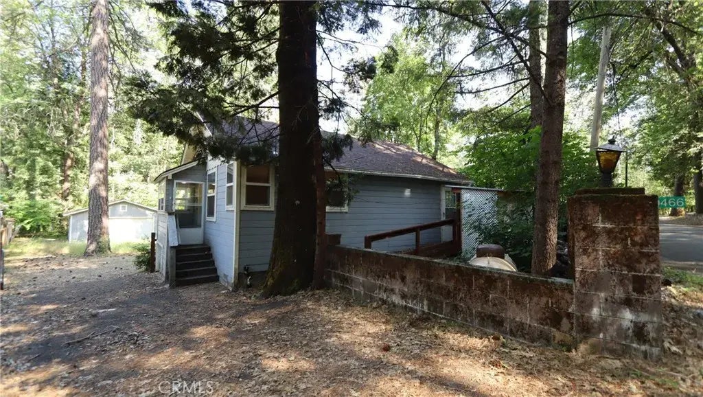 FULL NEWLY REMODELED CABIN in sought-after vacation community underneath the towering trees. Brand new kitchen, flooring, roof, furnace, double pane windows, recently new bathroom. New septic system. Double garage on level, all fenced lot for easy gardening and keeping your pets safe. ADA accessible ramp and bathroom. Kitchen has quartz counter tops and solid wood cabinetry. The bathroom is all tile. Rear deck for hanging out. Plenty of space for parking or expanding the home. No maintenance for a long time. Easy stroll down to the community pool, store, and bar and grill.
