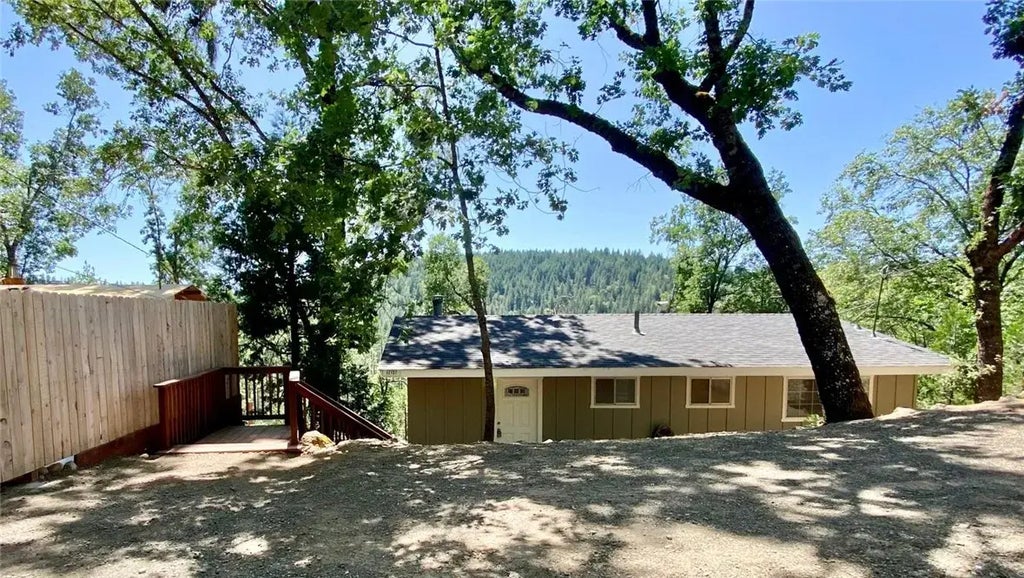 TURNKEY IN LOCH LOMOND VILLAGE. Perched on the top of Black Oak Drive this newly renovated residence boasts high ceilings with original wood, luxury vinyl plank in the kitchen and common living areas, and brand new carpet in the 2 spacious bedrooms and the large closeted den. Enjoy views of the mountain above and the vernal lake below from the redwood deck. The exceptionally large driveway provides ample parking or enough space to build a garage or carport. Walking distance to Loch Lomond Resort complex which features a restaurant/bar, a spring fed swimming pool, and a small market for your last minute cooking needs.