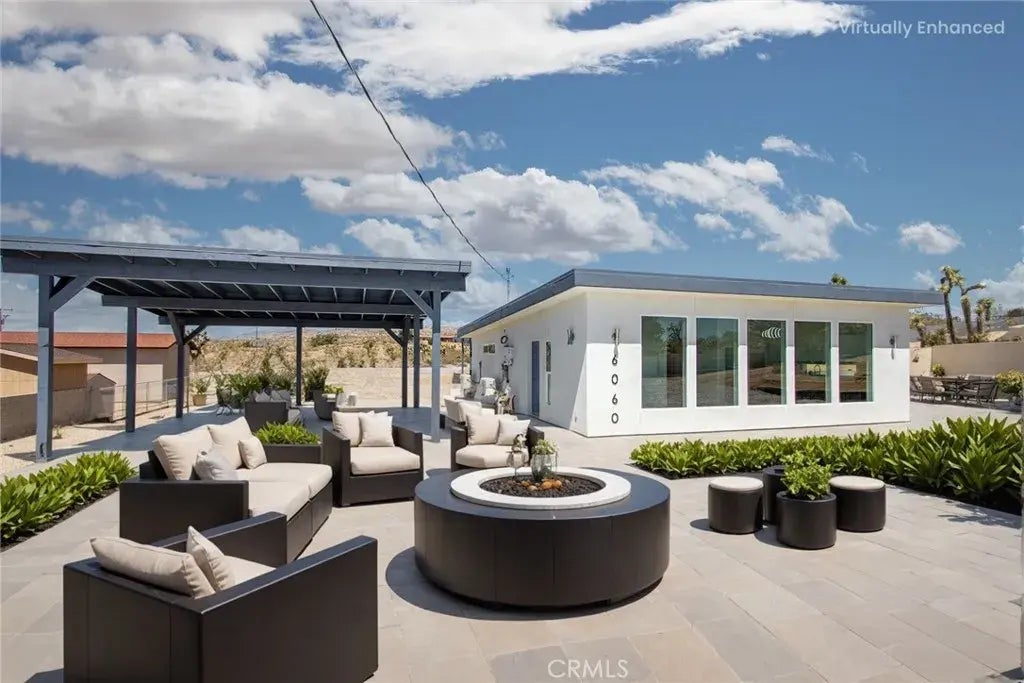 Brand New Home, 2 bedrooms 2 bath, open-concept living area, high ceilings, (8-10 ft) creating an airy and spacious feel, 1000 sf of living space, on an 0.80 acres, land, described as square-shaped, which provides a versatile layout for landscaping or future development. Property features modern amenities like, energy efficiency paid solar panels system, reducing utilities costs and environmental impact. The home is equipped with three independent AC/heating systems, ensuring personalized climate control, and features triple pane windows with argon gas, enhancing insulation, noise reduction, and UV sun protection. A gourmet kitchen, stainless steel appliances, granite arctic white backsplash, spacious countertops, gorgeous lacquer cabinets, catering to culinary enthusiasts and offering a modern aesthetic. Both bedrooms are spacious, one of which is master bedroom, designed with custom closet organizers, maximizing storage and functionality. Premium flooring of half inch thick, scratch free, 100% waterproof vinyl installed as a single piece with lifetime warranty, ensuring durability and low maintenance. Home is wifi ready, making it ideal for both, remote work or entertainment. Outdoor amenities include a large, solid carport that can be converted into garage or additional living quarters, adding flexibility for buyers. The property is spa-ready with (220V) electric connections, outdoor shower, and features a dusk-to-dawn outdoor sensor lighting system for safety and ambiance. Property is fully fenced for privacy and security, graded and situated on top of a hill, with reta