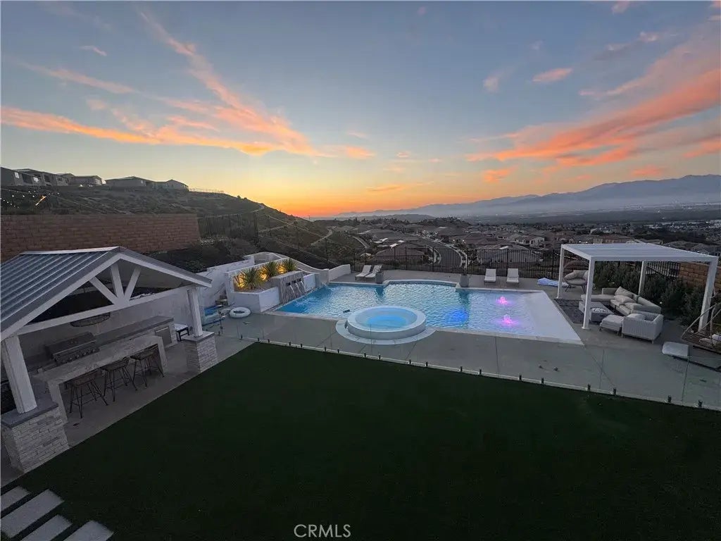 Huge price improvement! High in the Hills of Corona Just across the Orange county border sits this absolutely stunning 4180 Sq. ft. Luxury home in the Sierra Bella Development off Green River. This home Boasts one of the best views in the area all from your stunning back yard with a modern pool and jacuzzi, waterfalls and a slide to provide entertainment for all. Every inch of this house has been remodeled with the latest design features. This home features a main floor Gen Suite, it has a Balcony off the master to enjoy your amazing View. There is a well appointed master bath with a spacious walk in shower and separate luxury tub. The upstairs loft provides a relaxing space for the family and there are three oversized bedrooms on the second level, as well as the master bedroom. The built in cabinets throughout the home add storage and style. The California room style patio surrounded by sliding doors on two sides provide an open and inviting space for everyone to be included at parties, and gatherings. The yard has all been meticulously done with low maintenance landscaping, 2 fire pits, and built in seating. The outdoor kitchen and Bar will make you the envy of all your friends! This spacious home has too many upgrades to miss and don't forget it also has a three car tandem garage. Don't miss out on this one!