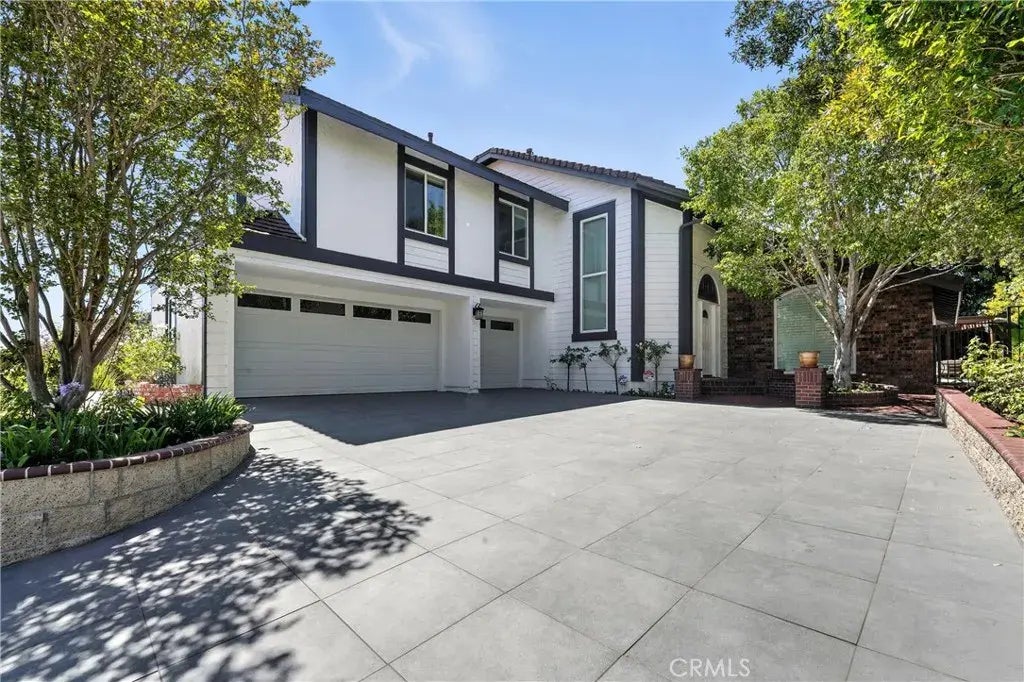 Welcome to 24901 Del Monte Street, an extraordinary custom designed residence tucked within the prestigious and covenant community of Stratford Ridge. This fully remodeled five bedroom, three bathroom home spans approximately 3054 square feet and masterfully blends modern sophistication with timeless elegance. A spacious and light filled open floor plan showcases dramatic chandeliers, engineered wood flooring, bespoke oak finishes, and custom wall paneling throughout. At the heart of the home is a thoughtfully reimagined chefs kitchen, complete with handcrafted oak cabinetry, a custom built in refrigerator with shaker style panels, quartzite countertops, and top tier designer appliances. The kitchen flows effortlessly into a welcoming living space accented by solid wood beam ceilings, an elegant fireplace, and a handcrafted double sided bar ideal for entertaining. On the main level, a full bedroom and bathroom offer comfort and flexibility for guests or multigenerational living. The expansive primary suite upstairs serves as a private sanctuary, featuring dual vanities, a Victorian-style standalone tub, a spacious shower, and a private balcony with picturesque views of the resurfaced pool and beautifully landscaped yard. Outside, enjoy a stunning red brick barbecue area, a sparkling pool and spa, and lush greenery designed for year round enjoyment. Additional upgrades include dual pane custom windows, new garage doors, epoxy coated garage flooring, ample built in cabinetry, a brand-new custom tile driveway, dual zone air conditioning, solar panels, and a completely re piped