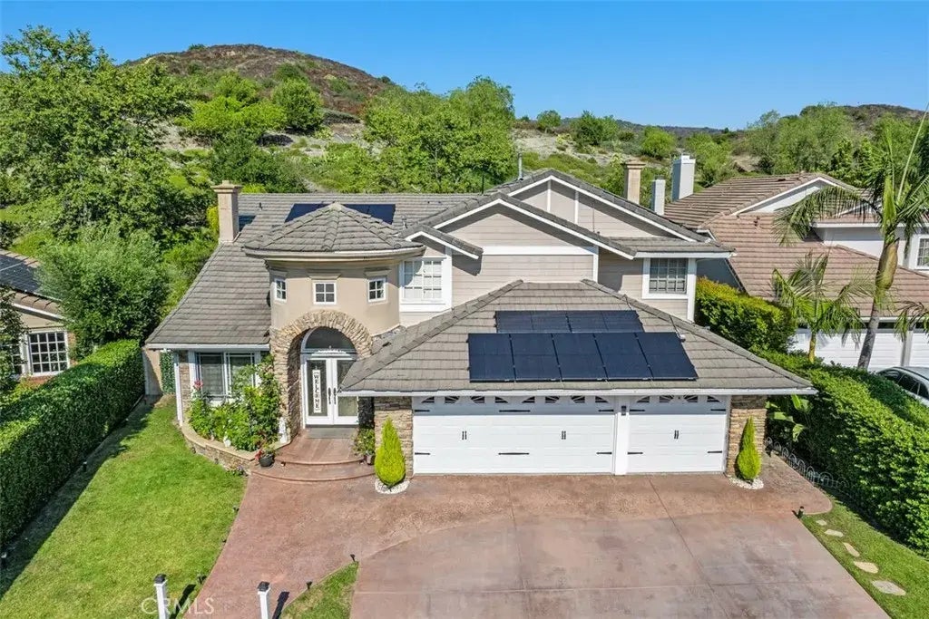 Experience luxury living at 8 Eastridge, a distinguished home with a private backyard oasis in the sought-after Oakmont community of Coto de Caza. Situated on an expansive lot, the property features a sparkling pool, spa, built-in BBQ, and plenty of outdoor space for both relaxation and entertaining. This unique residence offers a highly desirable floor plan with 5 bedrooms plus an office and 3 bathrooms. The open-concept design is enhanced by high ceilings and multiple skylights that bring in an abundance of natural light. Upon entry, a formal living room welcomes you with a full wet bar, accompanied by an adjacent office or bonus room enclosed with French doors. The gourmet kitchen is outfitted with stainless steel appliances, a built-in gas range, double ovens, granite countertops, and a breakfast nook. It flows seamlessly into the family room, with a formal dining area nearby, perfect for hosting. A convenient downstairs bedroom and full bathroom offer flexible living arrangements, and the office can easily be converted into a sixth bedroom with the addition of a closet. Upstairs, the serene primary suite includes a well-appointed bathroom with dual sinks, a vanity area, soaking tub, and separate walk-in shower. Three additional spacious bedrooms and another full bathroom provide ample space, with one of the bedrooms offering access to a private balcony overlooking the backyard. Outside, your tropical oasis includes a pool and spa with a waterfall feature, outdoor shower, fire pit, and a built-in BBQ with counter seating, ideal for al fresco dining. Additional upgrades