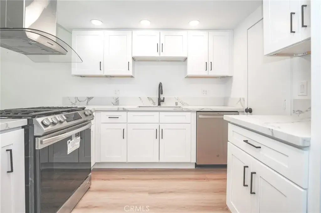 UPGRADED FIRST-FLOOR UNIT WITH 2 BEDROOMS AND 2 BATHS IN THE GATED COMMUNITY OF TUSTIN VERDES! Step inside a remodeled interior space. Once you step inside the unit, will immediately notice how nicely upgraded the inside is, with the wood flooring throughout and recess lighting. The living room is spacious and includes a fireplace, perfect to cozy up to on those cold evenings. Windows throughout to let plenty of natural light in. The upgraded kitchen includes stainless steel appliances, a quartz countertop, a stainless sink, a stainless steel dishwasher, and white color cabinets with plenty of storage space, kitchen is situated where you can look out to your outdoor patio space and dining area. Separate dining area, that can open up to the outdoor patio space, which is perfect when entertaining guests. Total 2 beds and 2 baths all upgraded with modern finishes. The primary bedroom includes its own primary bathroom that is upgraded with modern finishes. Detached 1-car garage. Conveniently located near many restaurants, shops, markets, and easy access to the 5 or 55 freeways.