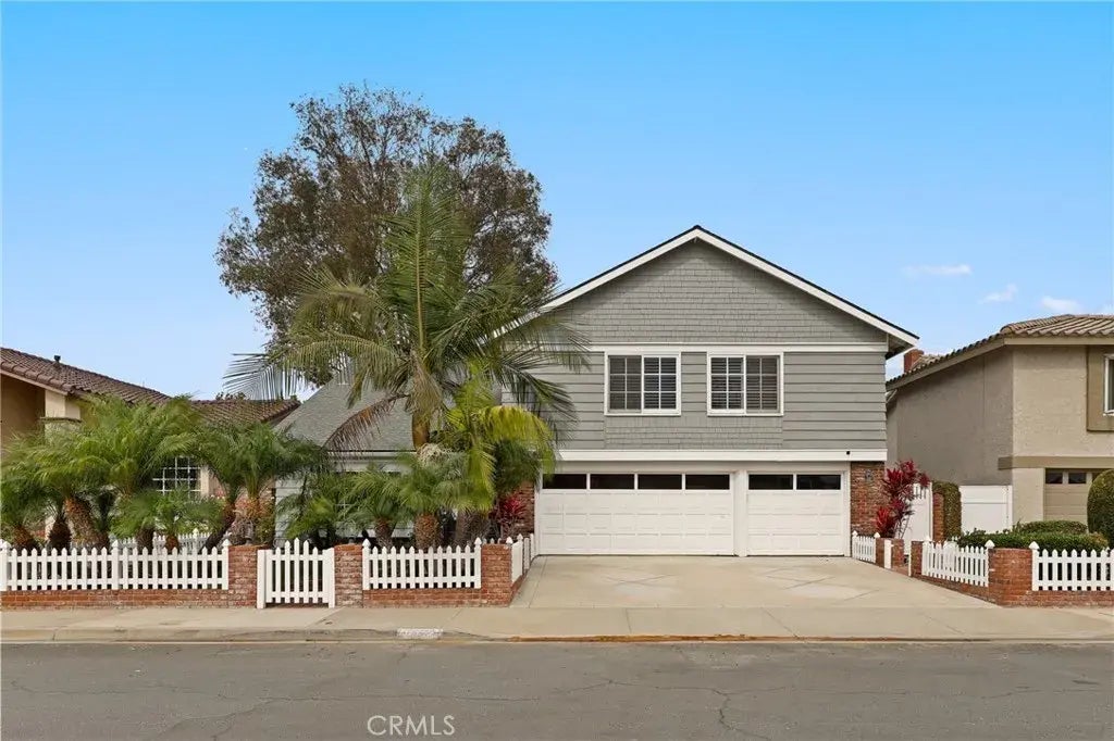 Welcome to 14422 Birmingham Drive, a charming pool home that radiates curb appeal with its classic red brick accents and white picket fence. Inside, wide-plank vinyl wood floors flow throughout the spacious layout. The family room with vaulted ceilings seamlessly connects to the formal dining room, while the inviting living room features a cozy fireplace, crown molding, and recessed lighting, opening to the remodeled chefs kitchen with white shaker cabinets, stainless steel appliances, a center island, quartz countertops, and a glass tile backsplash. French doors lead to the entertainers backyard complete with a sparkling pool, spa, firepit, and built-in BBQ island with counter seating. The first level also offers a full-size laundry room, powder room, and direct access to the three-car attached garage. Upstairs, the primary suite boasts an ensuite bath with dual-sink quartz vanity, while two secondary bedrooms share a full hall bathroom. A generous bonus room with built-in bookcases, vaulted ceilings, custom woodwork, and a wet bar provides the perfect flex space. All this, just 3.5 miles from the beach!