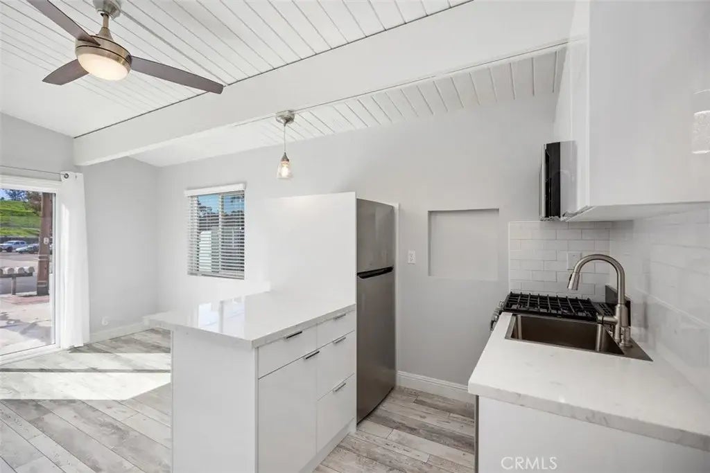 This updated single-level 2-bedroom in Doheny Village is available now! Light, bright, and recently updated, this single-level home has just one shared wall and no one above you. The kitchen has a fresh coastal feel with stainless-steel appliances and opens right into the living area, where the glass slider lets in natural light and provides easy outdoor access. The primary suite is tucked away at the back with a roomy walk-in closet, while the front bedroom offers its own exterior access that is perfect for guests or a home office. The bathroom includes a walk-in shower, crisp white finishes, and a fun pop of blue and gray tile. Other perks include ceiling fans in both bedrooms, an oversized driveway with plenty of parking, and convenient on-site laundry. All of this in the ever-evolving Doheny Village, just minutes from Capistrano Beach, Dana Point Harbor, PCH, and the 5 Freeway.