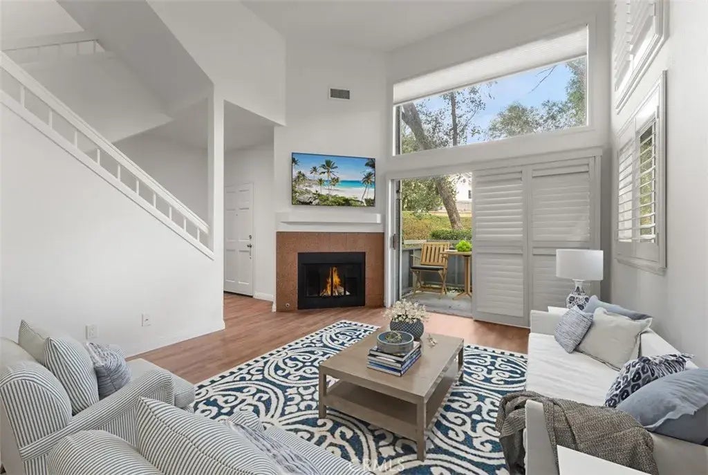 Discover your serene retreat in this beautifully updated stylish 2-bedroom end-unit townhouse, perfectly nestled in the heart of Laguna Niguel. Bathed in natural light, this home features soaring vaulted ceilings and picturesque views of lush trees and scenic walking trails. The unique open-concept floor plan flows effortlessly, showcasing a cozy fireplace in the inviting living area and a modern kitchen designed for culinary enthusiasts. The kitchen boasts sleek stainless steel appliances, stunning stone countertops, and a tumbled travertine backsplash, complemented by elegant shaker-style maple cabinets. Enjoy sunlit mornings in the charming eat-in dining nook with a bay window. This home offers two spacious master suites, each with its own private full bathroom, ensuring comfort and privacy. Additional highlights include a convenient laundry room, a two-car garage with direct access, fresh paint, new carpet, a newer AC and furnace, and a water softener for enhanced living comfort. Ideally located near Laguna Niguel Lake, Crown Valley Community Park, and the Laguna Niguel Botanical Gardens, this townhouse provides easy access to scenic walking and biking trails, as well as nearby shopping, dining, and the coastal charm of Laguna Beach and Dana Point. Welcome home to tranquility and style! Welcome home to 24839 Nueva Vista.
