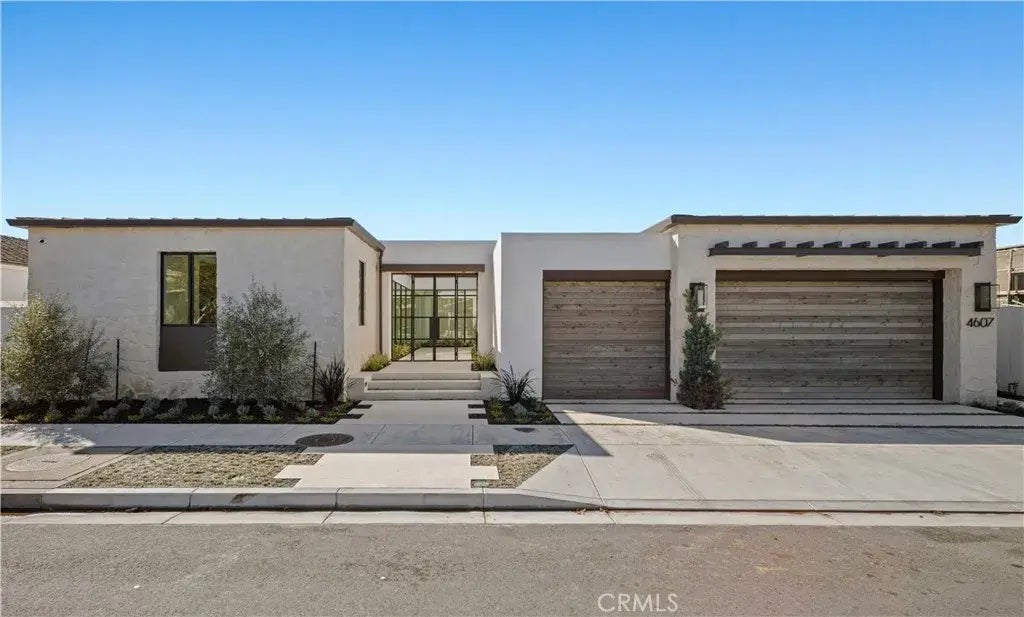 Well-positioned in the sought-after Cameo Highlands community of Corona Del Mar, this newly-built home is absolutely sure to impress. Perched on an ocean-view terrace with spanning ocean horizon, year-round sunsets, & Catalina Island views from the major living spaces, opportunities like this are rare to the market. Designed by highly-acclaimed architect Mark Teale with interiors carefully selected by Raili CA Design, this beyond-desirable home offers several key values: lightly occupied since newly constructed in 2023, a modern, ranch-style floor plan all on one level with no interior steps (4 bedrooms & 4.5 bathrooms), floor-to-ceiling walls of glass with obscured privacy gates in the entry atrium, white oak-beamed / vaulted ceilings and skylights in one generous great room, two extremely high-end kitchens (bonus butlers kitchen), massive disappearing slider doors - seamless to the generous rear patio with sunset-views over Catalina Island around the fire pit or from the fire-warmed dining, natural materials including a variety of stone, smooth stucco, rustic wood & steel elements, rift-white-oak custom cabinetry, built-ins, doors, ceilings, and stylish tiling throughout. All bedrooms are ensuite, one doubling as a bonus room or home office with custom built-ins. The primary suite features major ocean views from bed, custom window treatments, walk-in closet with custom wardrobe build-out, and a truly amazing primary bathroom with dual vanities, curbless walk-in shower, soaking tub, and private water closet. A dedicated laundry room equipped with newer machines, a solar sy