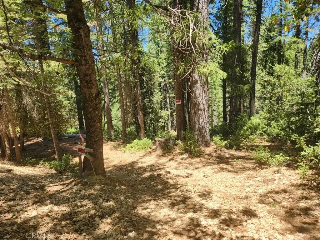 Wraparound woods! Enjoy your own pine tree playground at Merry Mountain Village, an attractive foothills enclave near year round recreation destinations with community water, street maintenance and security. There are also swimming pools, picnic/barbeque sites, a toboggan run and open space areas. Sly Creek Reservoir, Little Grass Valley Lake and Lake Oroville are nearby and shopping, services and conveniences are in the vicinity. This pleasantly wooded .60 acre lot bordered by Grizzly Creek is one of the larger parcels in the development and is located at the end of a peaceful, paved cul de sac offering privacy and seclusion. Further clearing is needed but power is at street frontage and on neighboring properties so there's not much to do but make plans for your full time retreat or vacation getaway. Surrounded by majestic foliage, you'll appreciate the tasteful ambience, refreshing energy and pride of ownership in this wonderful custom home environment. Experience a naturally green lifestyle of sheltered serenity and tranquility nestled in your personal mini forest.