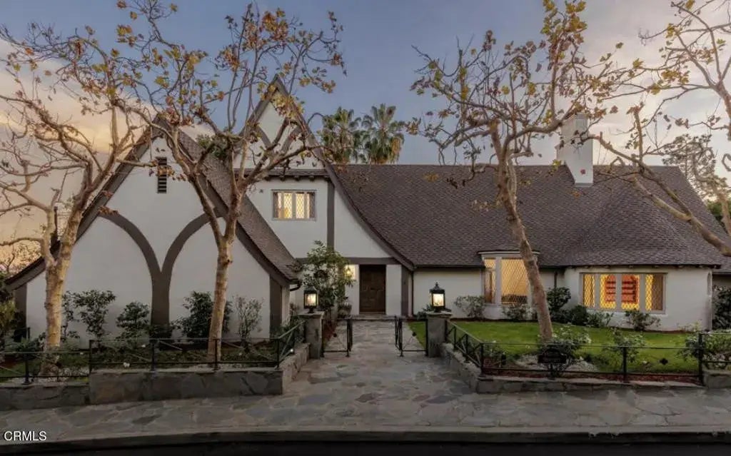 Welcome to Valley View cottage--a treasured piece of Pasadena's architectural heritage designed by Wallace Neff nearly a century ago. One of thirteen beautifully restored cottages on the gated grounds of the historic Huntington Hotel, Valley View was built in 1926 for the hotel's long-time owner and manager D.M. Linnard. Rich with timeless character, the residence blends Tudor Revival and storybook cottage styles with hints of a Grimmian fairytale. As you enter, striking interiors and design flourishes echo the home's impressive exterior. In the great room, a nearly 20' ceiling features exposed trusses and beams, creating a grand space for entertaining. The formal dining room glows with natural light from a thirty-foot wall with diamond-shaped mullioned windows while the beautifully updated eat-in kitchen connects to a sunlit breakfast room. Completing the main level, you'll find a guest bedroom / media room, three-quarter bath, and the luxurious primary suite with private balcony and spa bath. Upstairs, two bedrooms share a bathroom, with the southeast bedroom featuring a private balcony and sweeping valley views. The extremely versatile lower level, with its own entrance, offers a bedroom ensuite, two offices, a gym, two kitchens, and flexible living spaces. Outdoors, tiered gardens recall a countryside manor, equally suited for entertaining or a quiet evening under the stars in the Jacuzzi. With four deeded parking spaces plus a three-car garage, guests come and go with ease. As a resident of Huntington Circle, you'll enjoy direct access to the Langham Hotel's world-clas