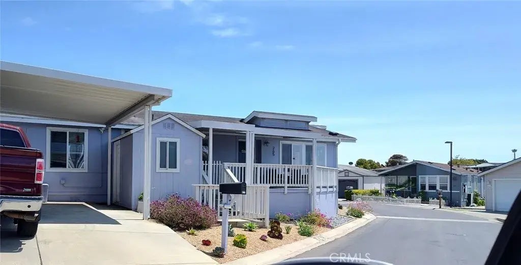 Spacious, one-of-a-kind Silvercrest manufactured home in the sought-after Mesa Dunes Mobile Home Estates. Open floor plan with a remodeled 26 long kitchen with tons of storage (36 cabinets & drawers), highlighted by a 10x4 white quartz slab island. Stainless appliances include Galanz dual refrigerators with 2 doors, 4 freezer drawers, and 2 ice makers. Five-burner, restaurant-style stove with vent hood, breakfast nook area, plus separate dining room. Low-decibel dishwasher and state-of-the-art, on-demand tankless reverse osmosis water system. Home is 1564 sq. feet with 3 bedrooms and 2 full baths. Open floor plan faces west, providing incredible light throughout the day. This was originally a 4 bedroom home and could be restored to that but currently it is being used as a dining room. Beautiful, newer grey-tone plank flooring and vaulted ceilings in living room, kitchen, and dining areas. Walls of windows bathe the interior with sunshine, with plenty of room for entertaining. Covered front porch and large deck perfect for enjoying California sunsets. Dining room features a beautiful lighted display cabinet with glass doors and storage. Laundry room with newer washer/dryer and a large stainless-steel sink and cabinets complete the package. New exterior paint and new paint in the living and dining areas. Newly constructed covered carport with room for two cars, plus outdoor storage shed. RV Storage is available (additional fee). Mesa Dunes is a quiet, all-age community, child and pet friendly, located on the Mesa above Arroyo Grande, and is a short drive to the Village and th