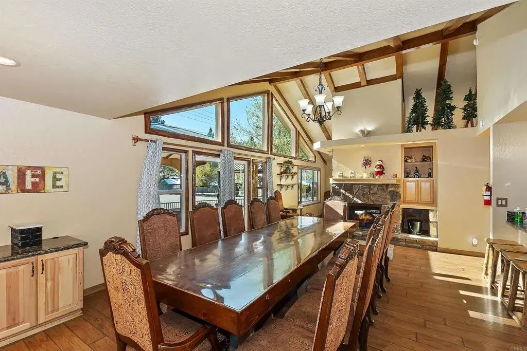 Location! Location! Location! Located about 2 minutes from Bear Mountain Ski Resource and less than 10 minutes from Big Bear Lake, the Village, the Zoo, golf course, restaurants, groceries and more. This incredible property makes the perfect full time home, second home or short term rental. This woodsy cabin features 5 bedrooms, an office which currently set up as an extra bedroom, a loft, 3 full baths, upgraded kitchen, open dining room with vaulted ceilings, double sided fireplace, separate laundry room, private backyard with basketball court. The lower level has 3 spacious bedrooms, 2 bathrooms and the laundry room. The upper level has 2 spacious bedrooms, an extra bedroom, a loft for entertainment. An attached oversized 2-car garage has a workbench and a large mudroom with plenty of room for storages. The driveway can accommodate up to 4 cars and a tandem parking on the other side of the house for another 2 cars.